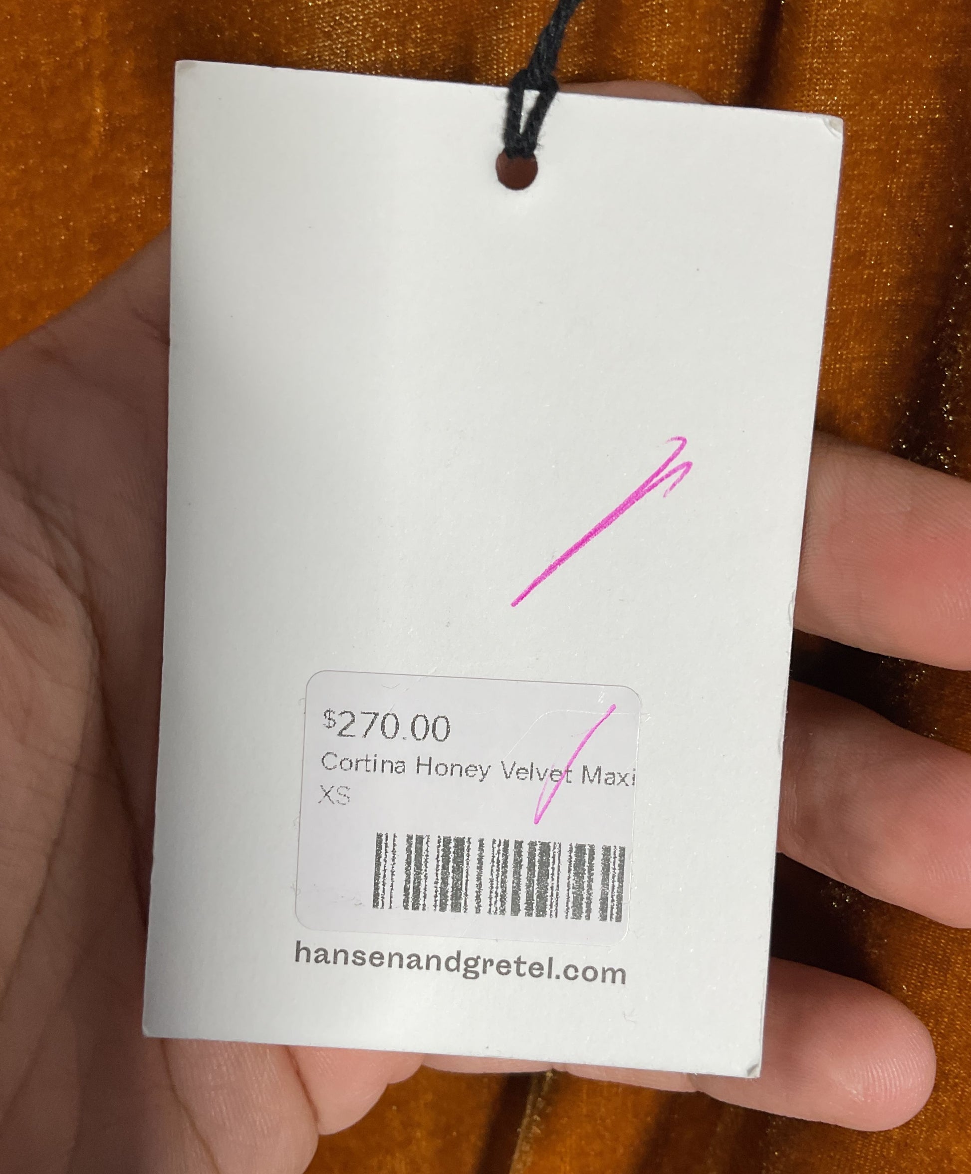Hansel & Gretel Cortina Women's Honey Velvet Slit Leg Maxi Dress Size XS