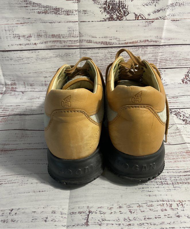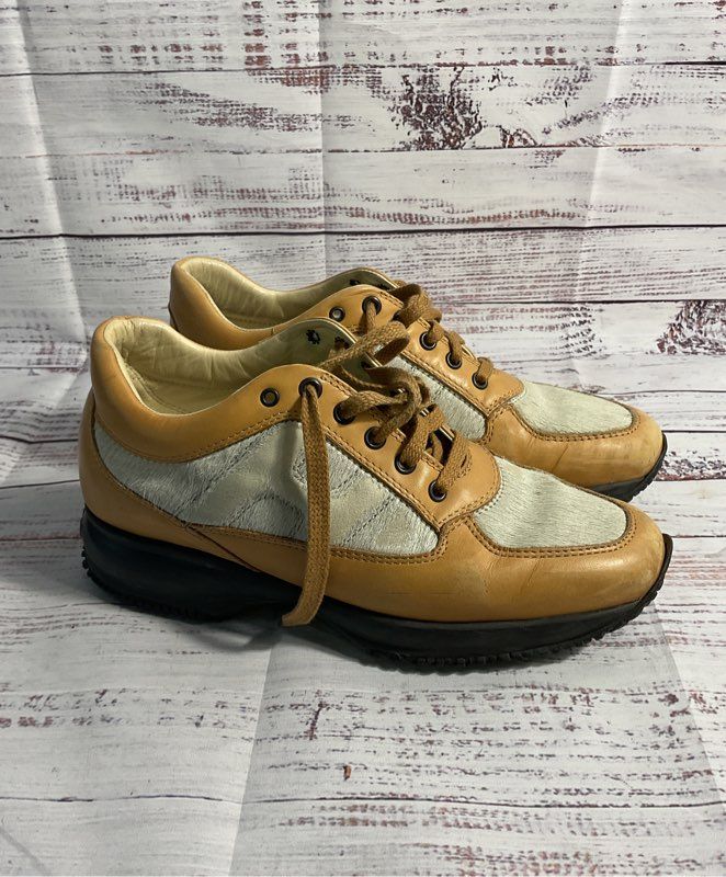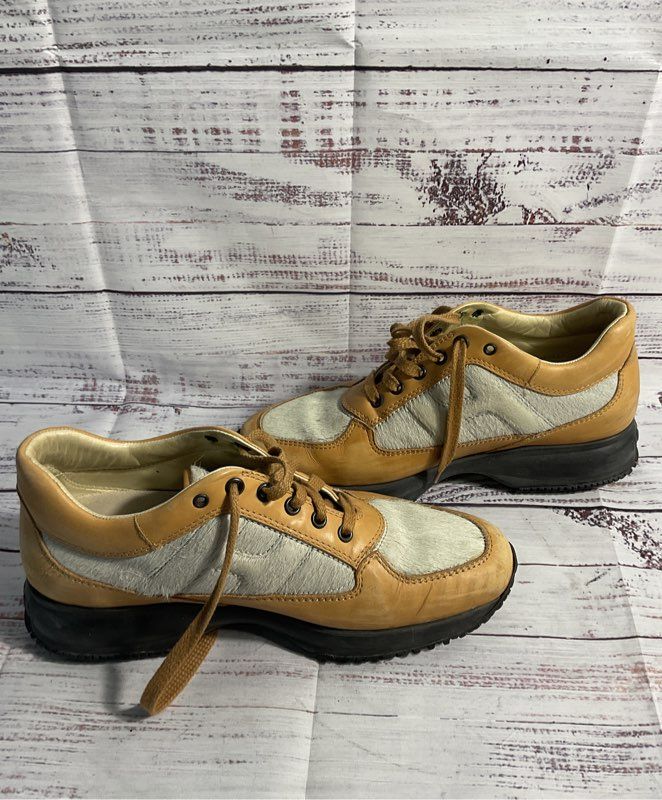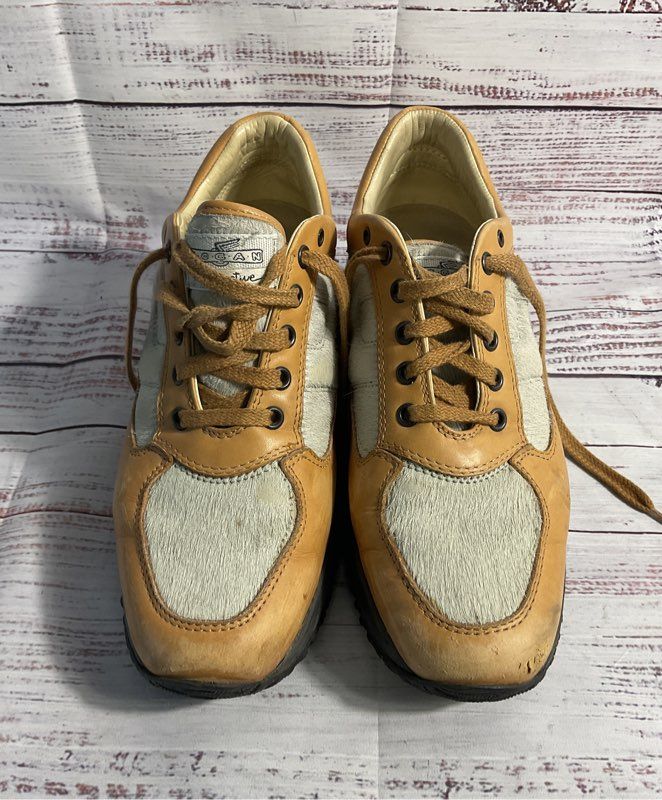 Hogan Interactive Leather & Pony Hair Brown Lace Up Sneakers Size 8 Unisex