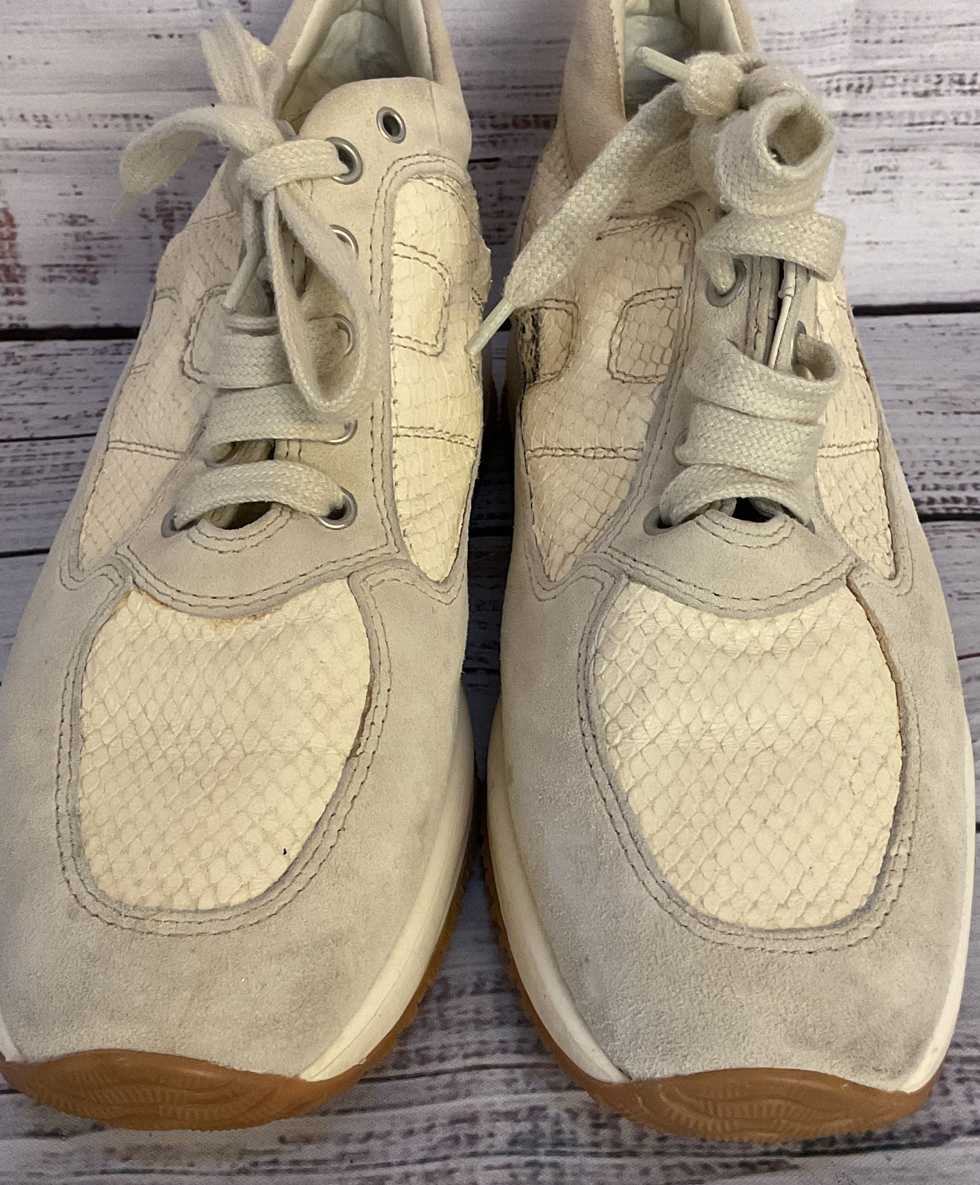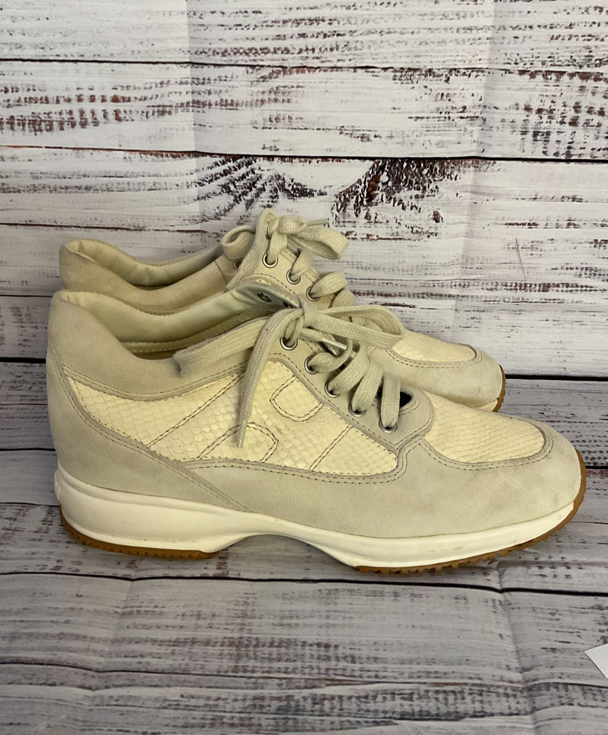 Hogan Suede Trimmed Snake Embossed Sneakers Light Grey Beige 9