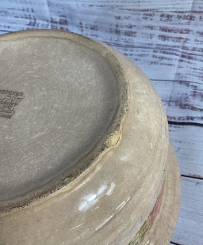 Hotoven Harker Cookware Bowl Silver Colored Rim Cross Stitch Floral Pattern