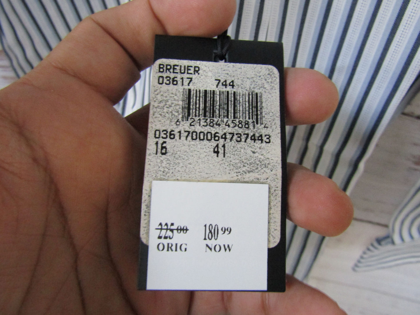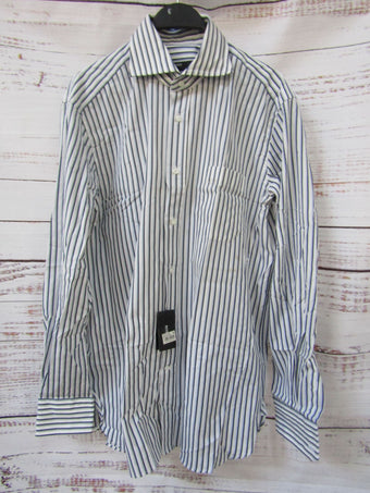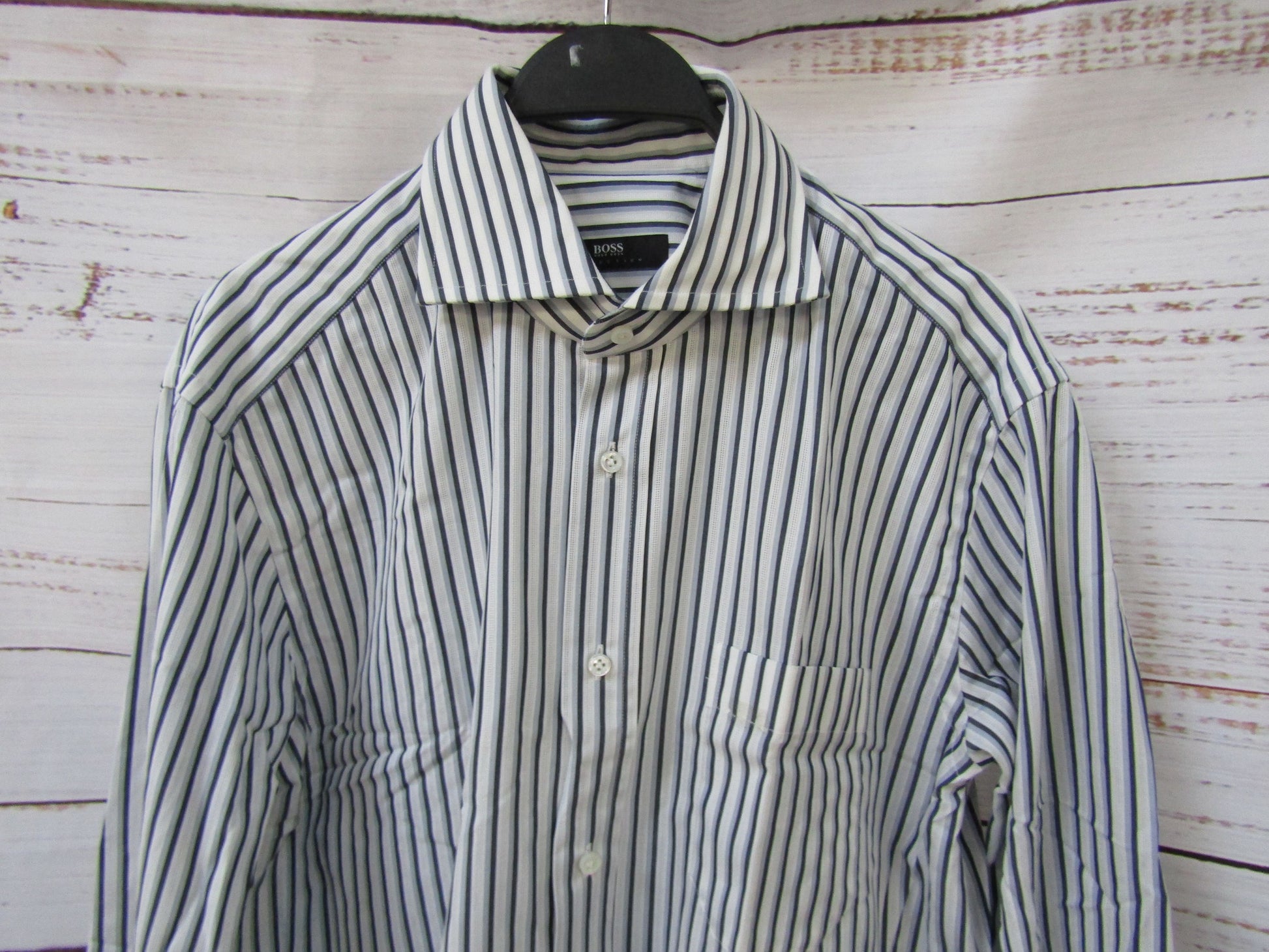 Hugo Boss Men's Blue Striped Long Sleeve Button Down Shirt Size 16 / 41