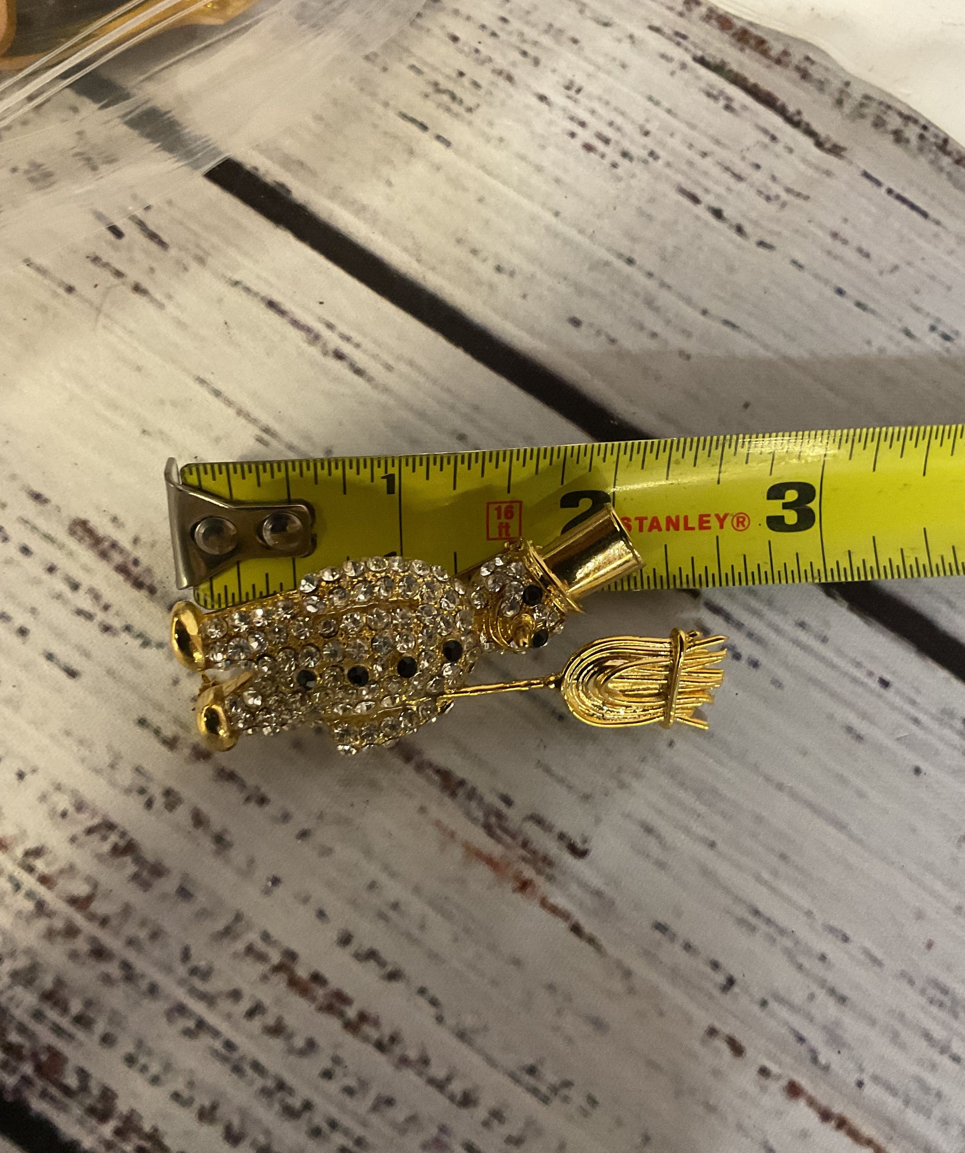 Idemaria Gold Tone Snowman Rhinestones Brooch Pin