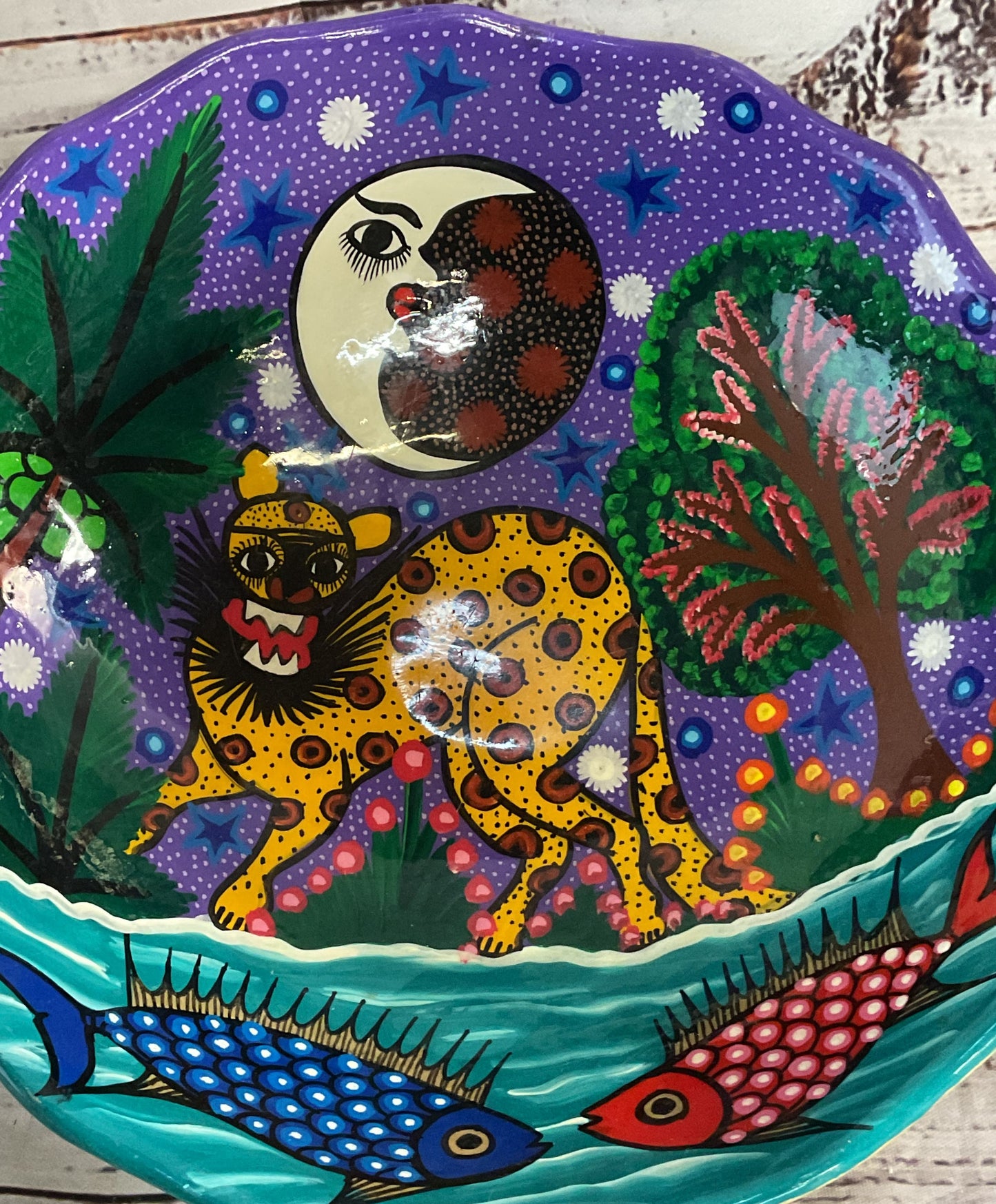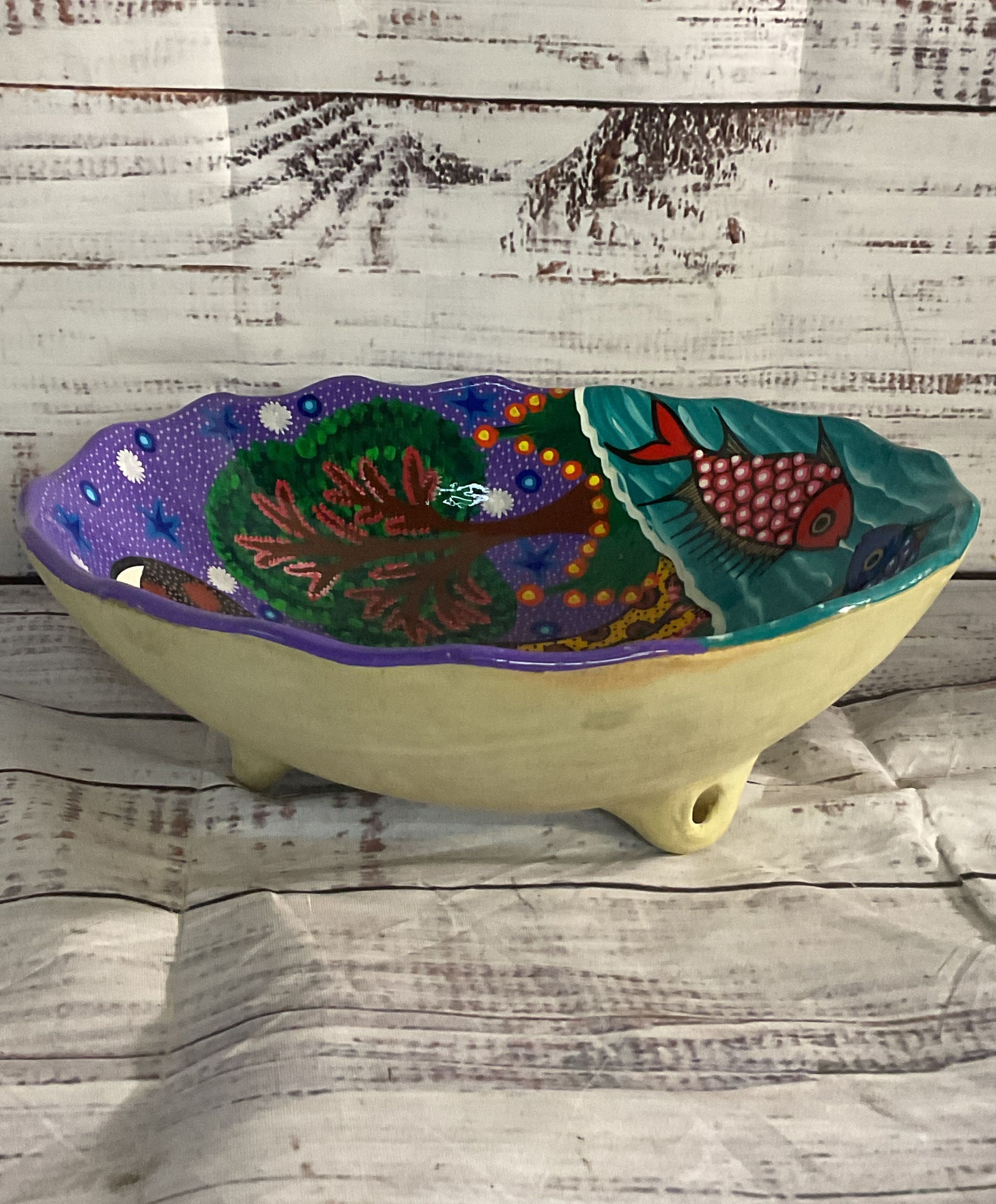 Inocencio Lazaro Hand Painted Puerto Vallarta 3 Footed Bowl Multicolor