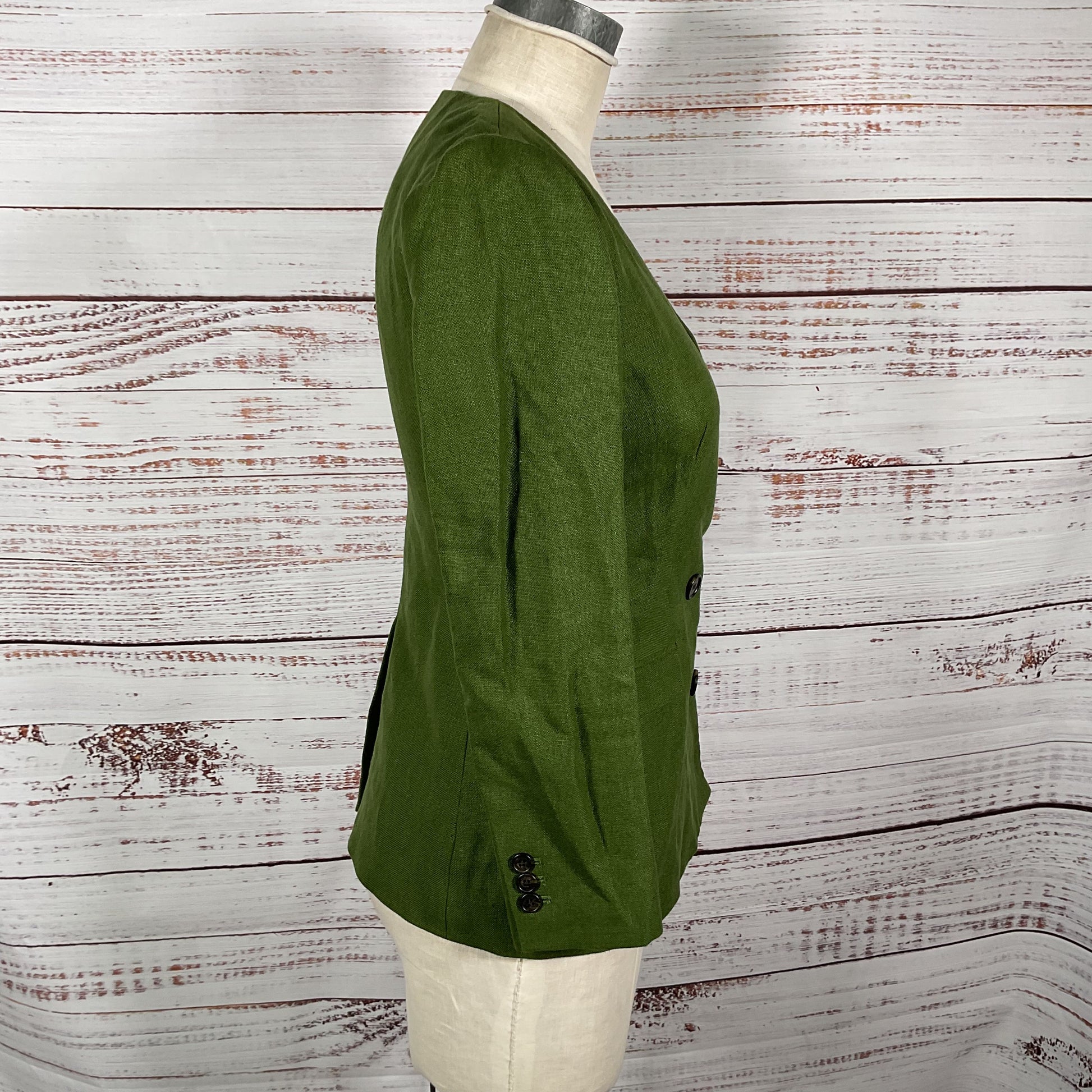 Color/Pattern: French Girl Green Linen Double Breasted Petite