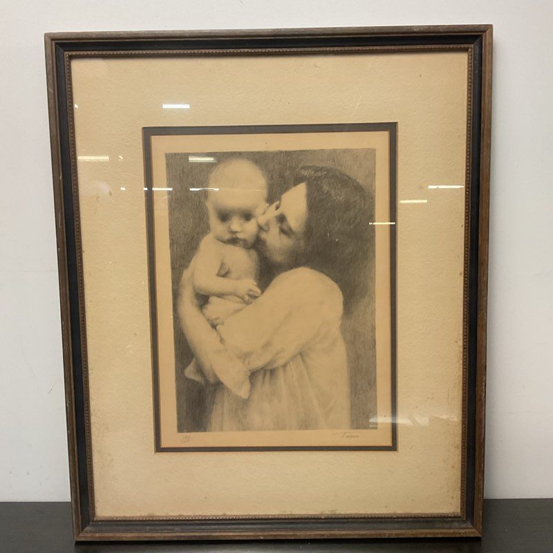Description: Mother and Child Print by Jennie Tomao Signed.