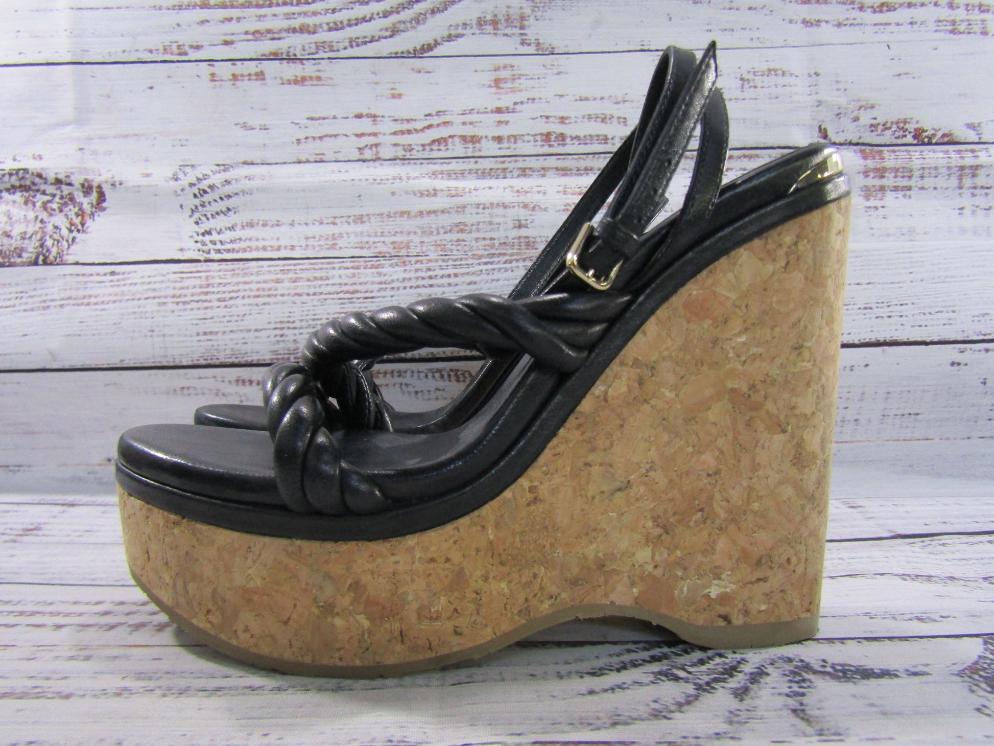 Jimmy Choo Diosa Women's Black Leather Espadrille Wedge Sandals Made in Spain