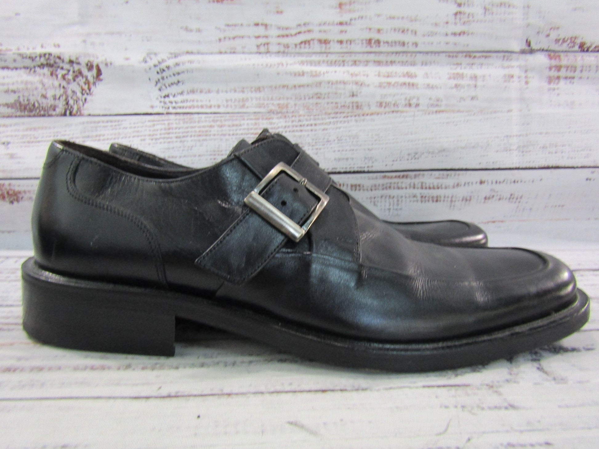 Johnston & Murphy Men's Black Leather Monk Strap Loafers Size 9.5 Made in Italy