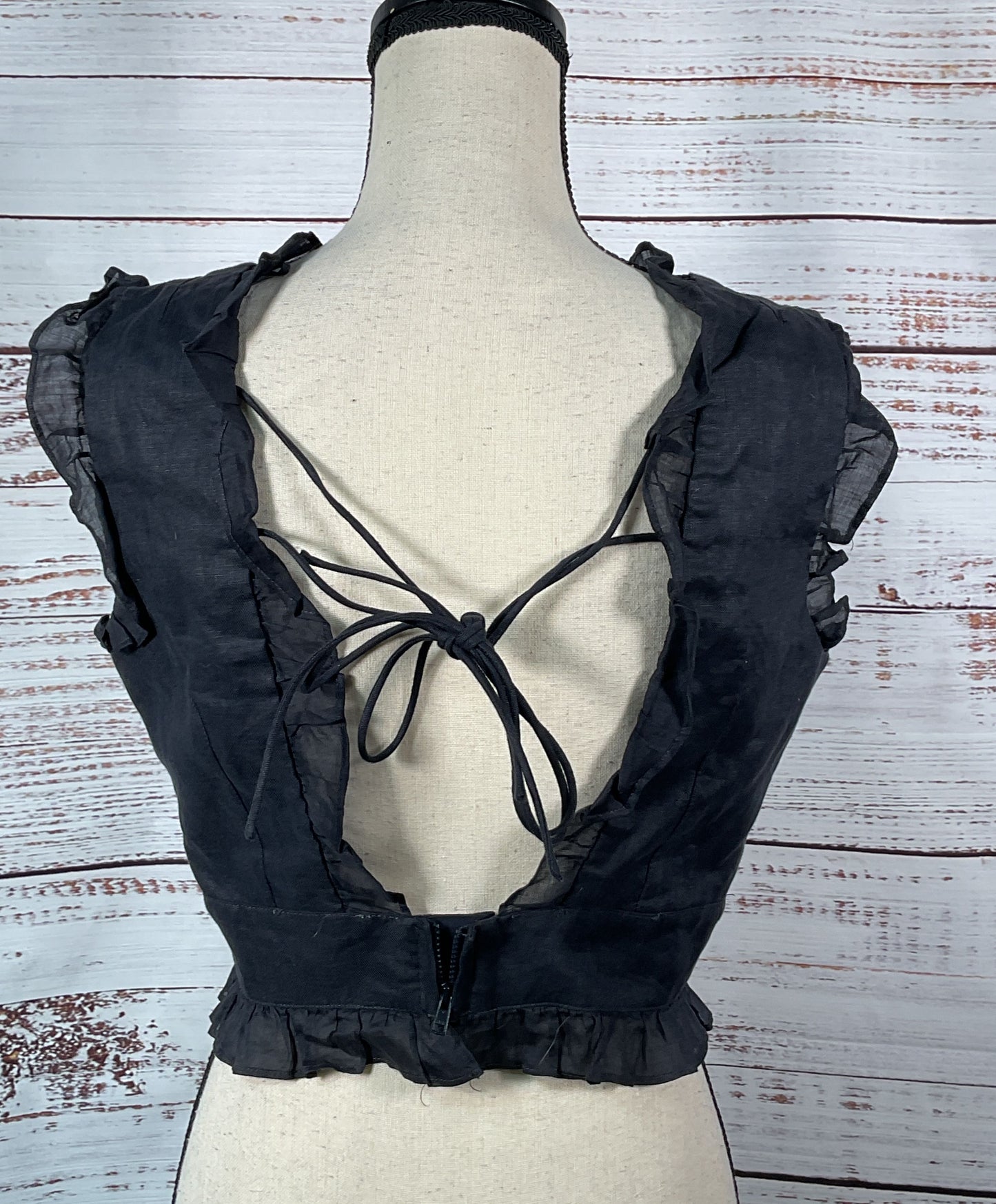 Joslin Linen Ruffle Sleeveless Top Navy Blue 8