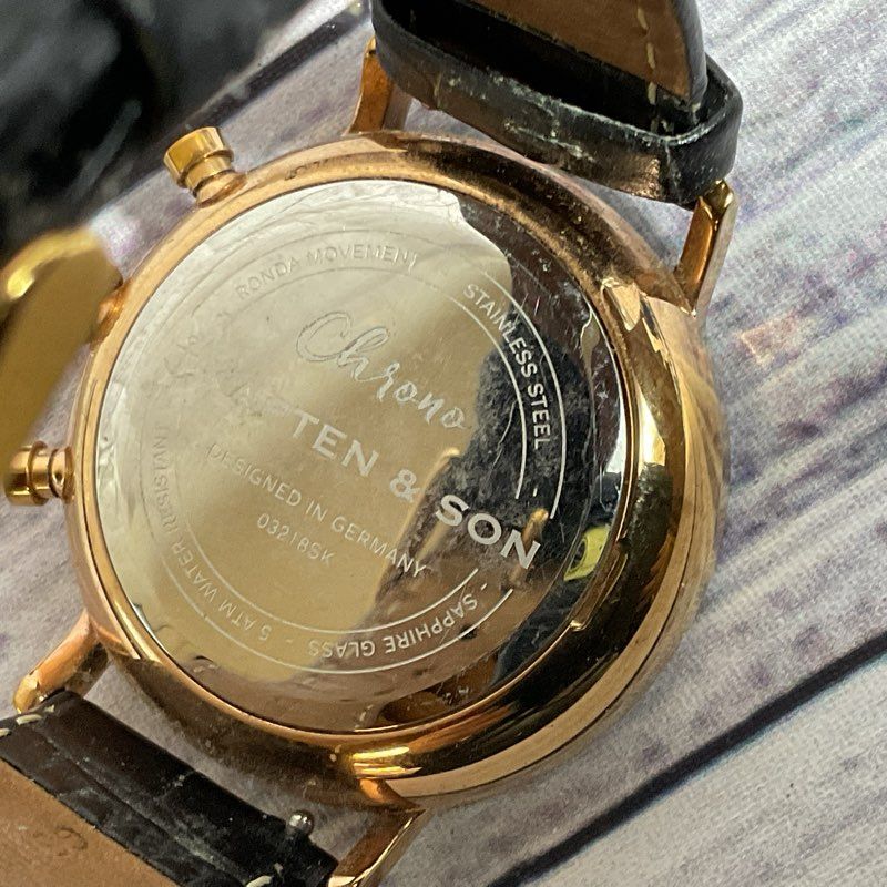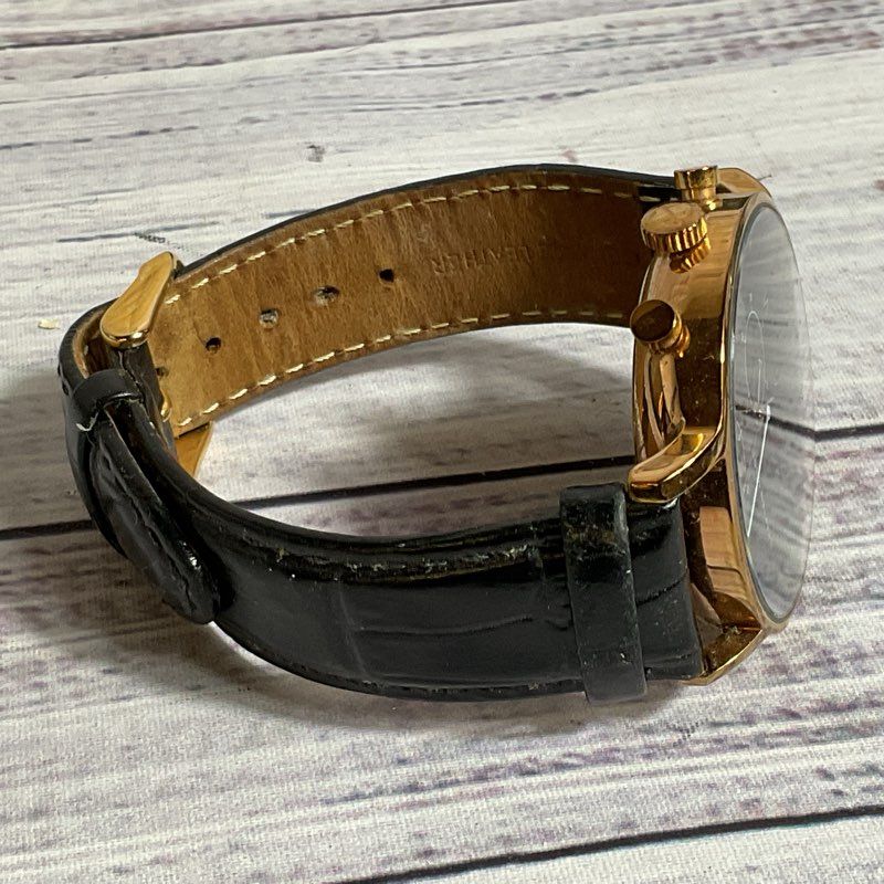 KAPTEN & SON Men's Gold Tone Black Crock Embossed Leather Chronograph Watch