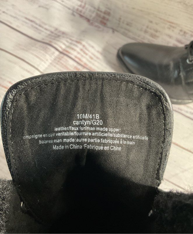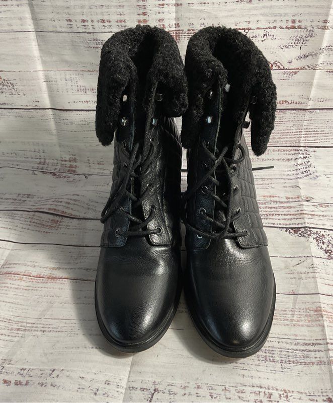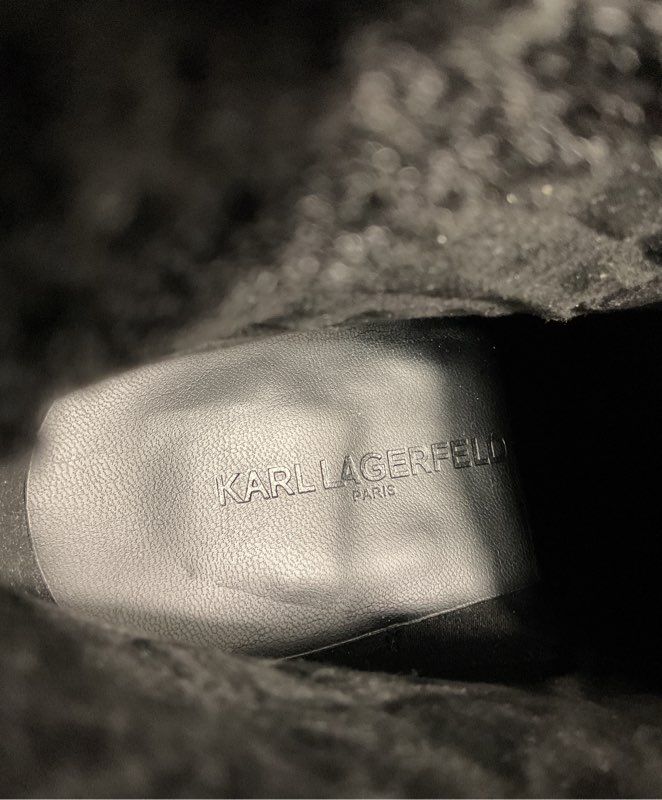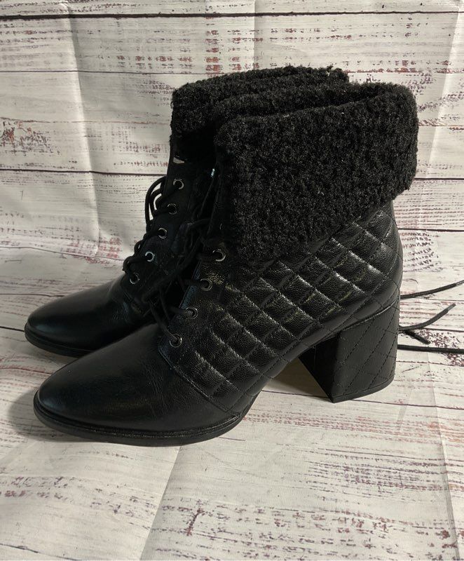 Karl Lagerfeld Cantyn Faux Fur Quilted Black Leather Block Heel Booties Size 10
