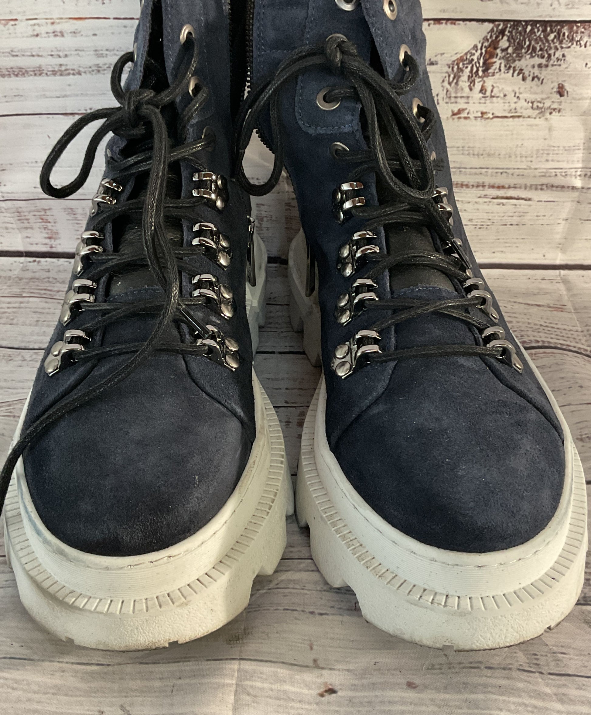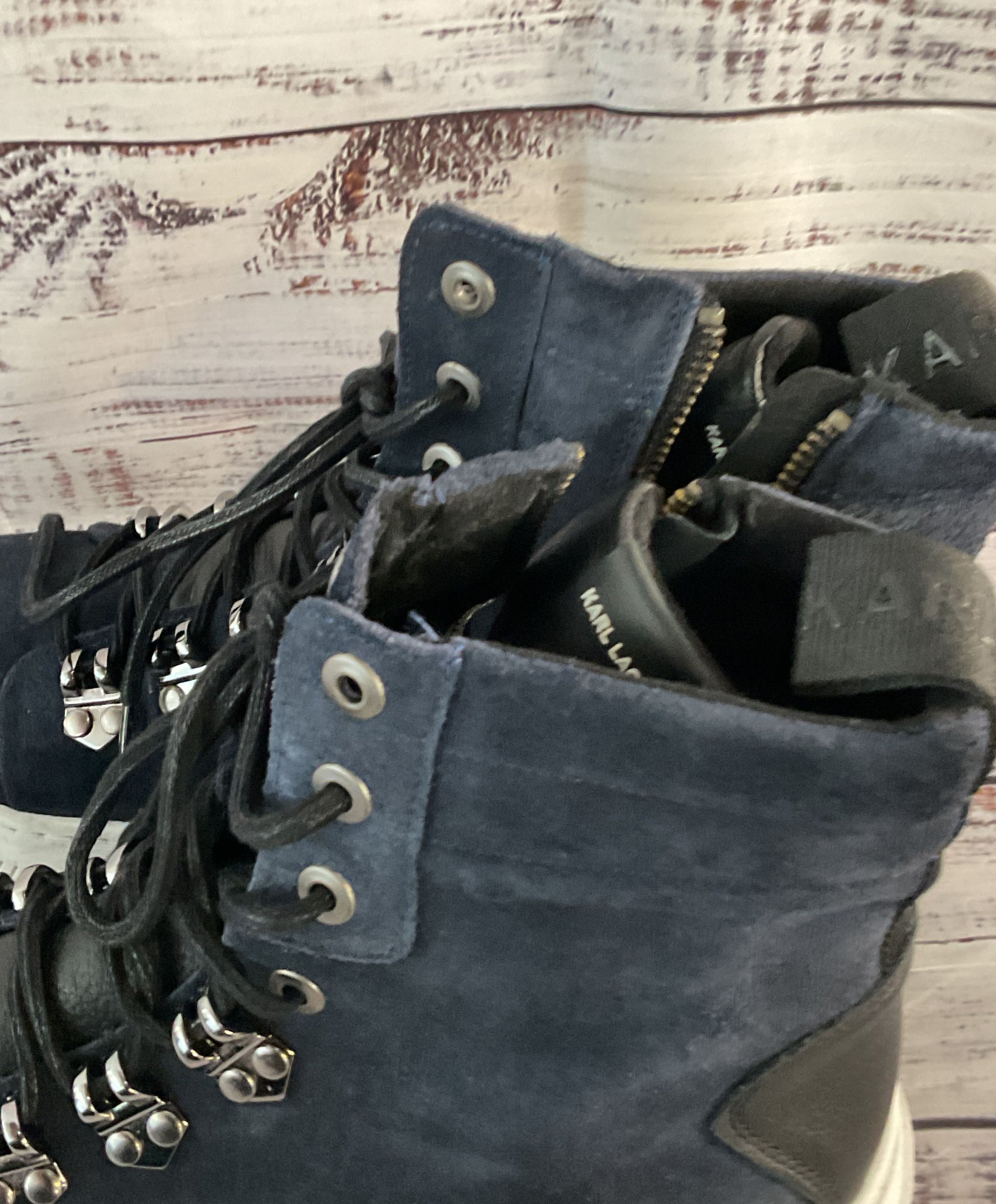 Karl Lagerfeld Paris Suede Ankle Platform Boots Blue 10.5