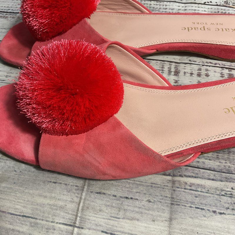 Kate Spade Amour Pom Pink Suede Slide Flat Shoes Women's 8