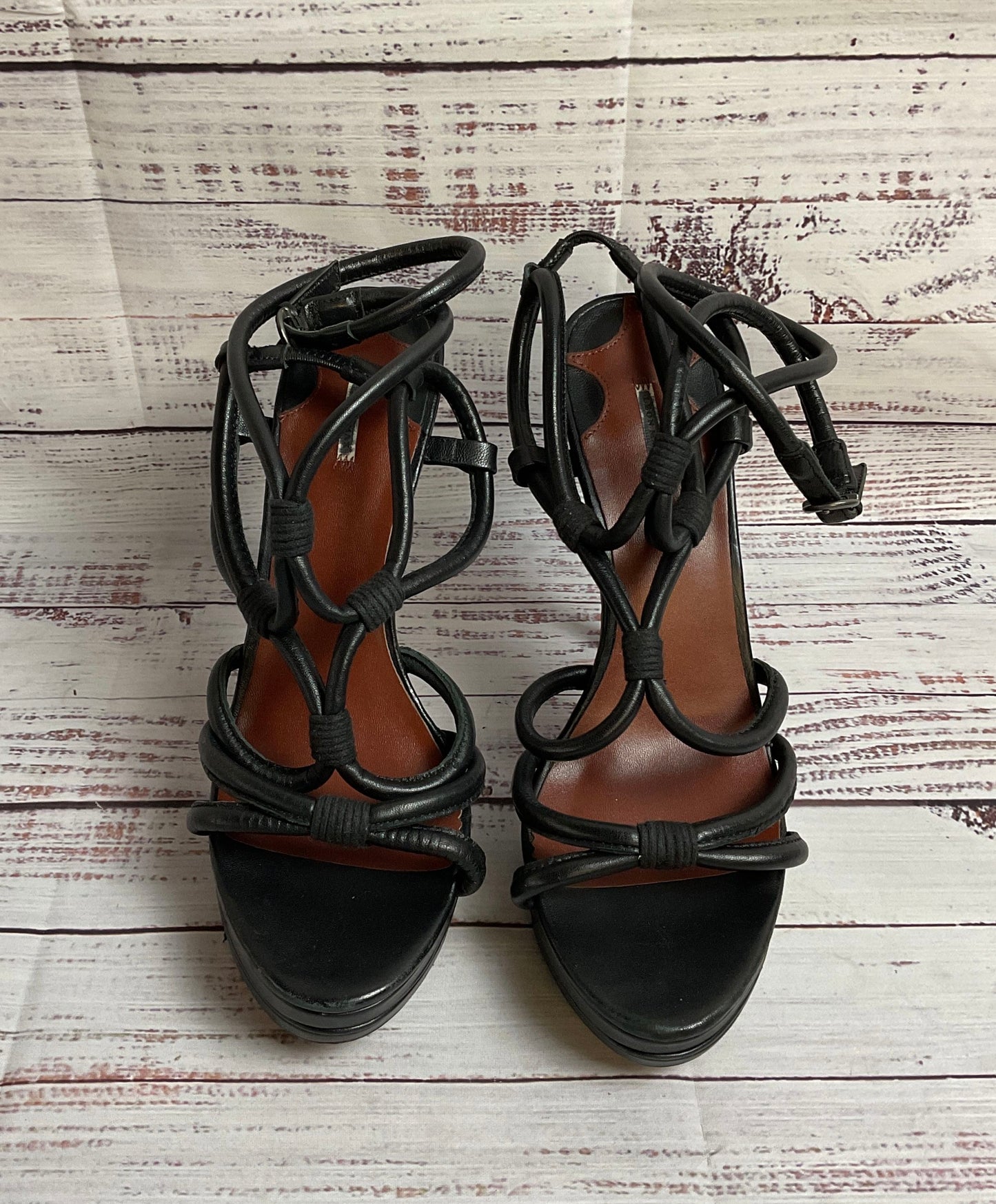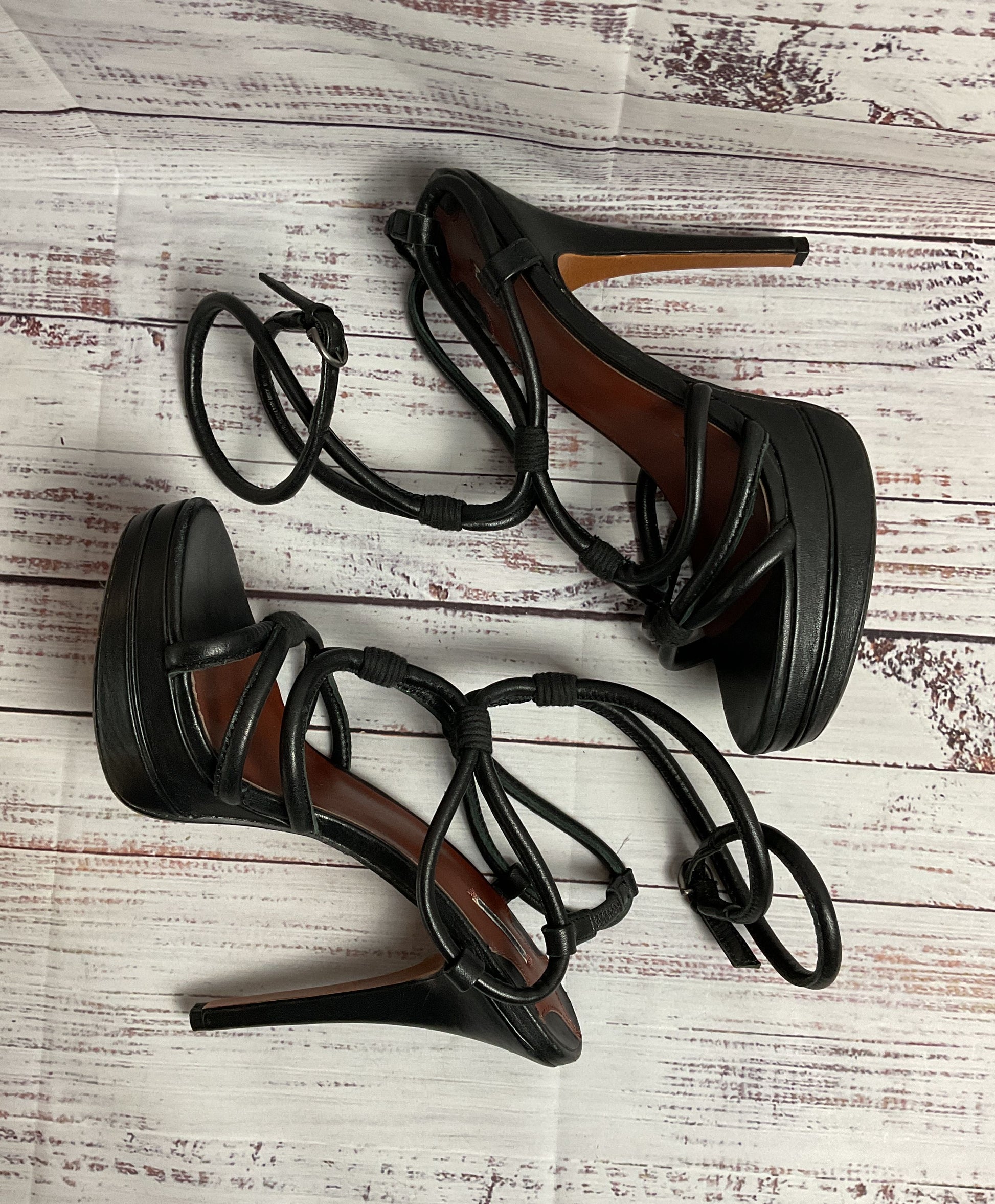 Leon Max Black Strappy Wrap Around Ankle 5" Heel Women 9.5