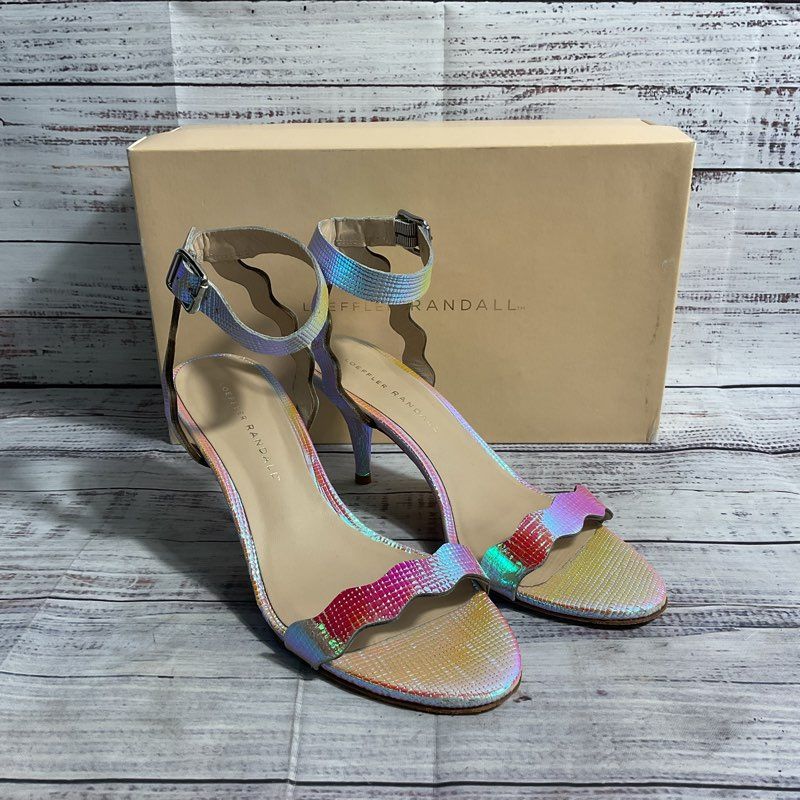 Loeffler Randall Reina Pearl Iridescent Embossed Leather Strappy Heels Women 7.5