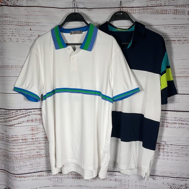 Lot of 2 G/Fore White, Blue, & Green Striped/Color Block Polo Shirts - Size L