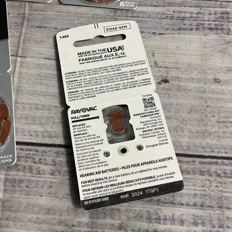 Model: Extra Advanced Hearing Aid Batteries Size 312 Exp. 2024