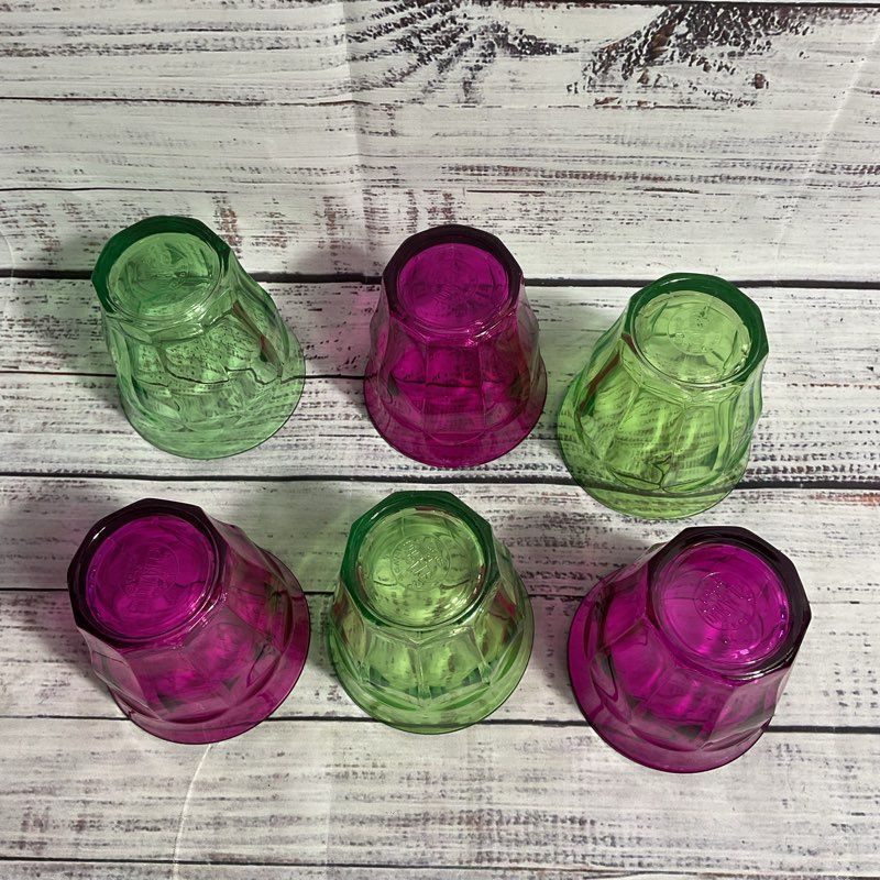 Type: Lot Of 6 Duralex Pink & Green Colored Glass Tumblers 3.5"