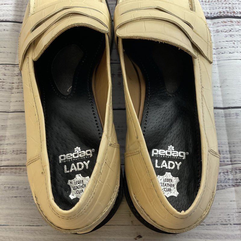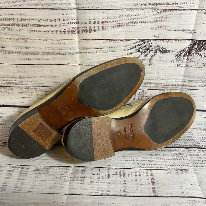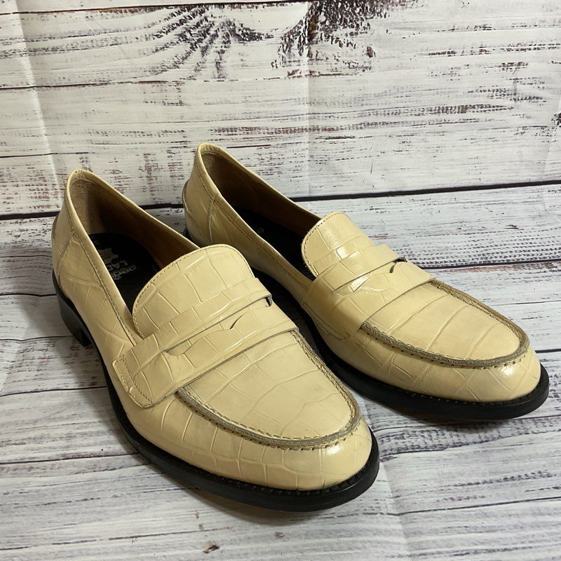 M. GEMI Women's Ivory Croc Embossed Leather Loafer Shoes- SZ 40