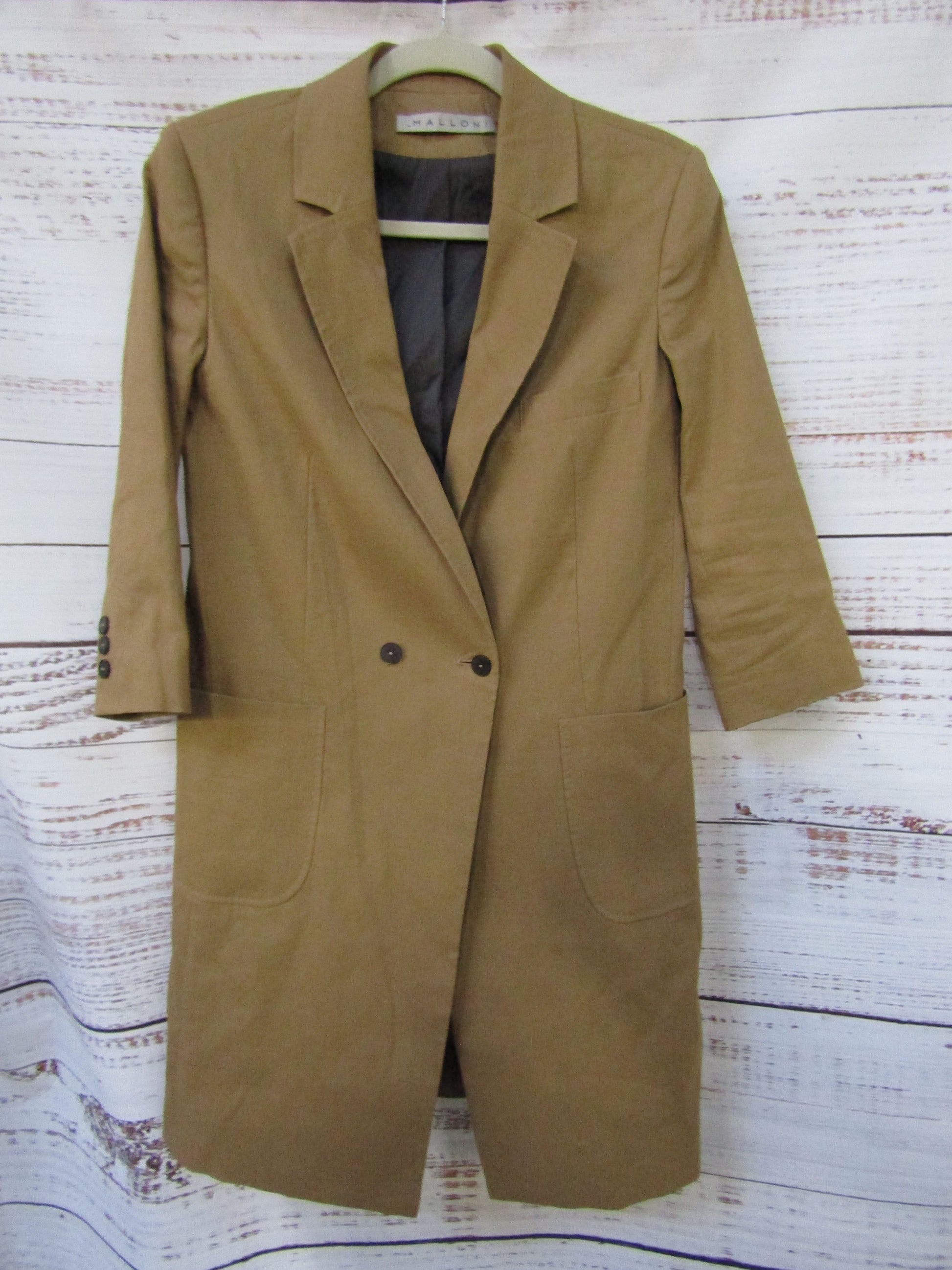 Malloni Women's Brown Ramie Blend Long Jacket Size 42 Made in Italy