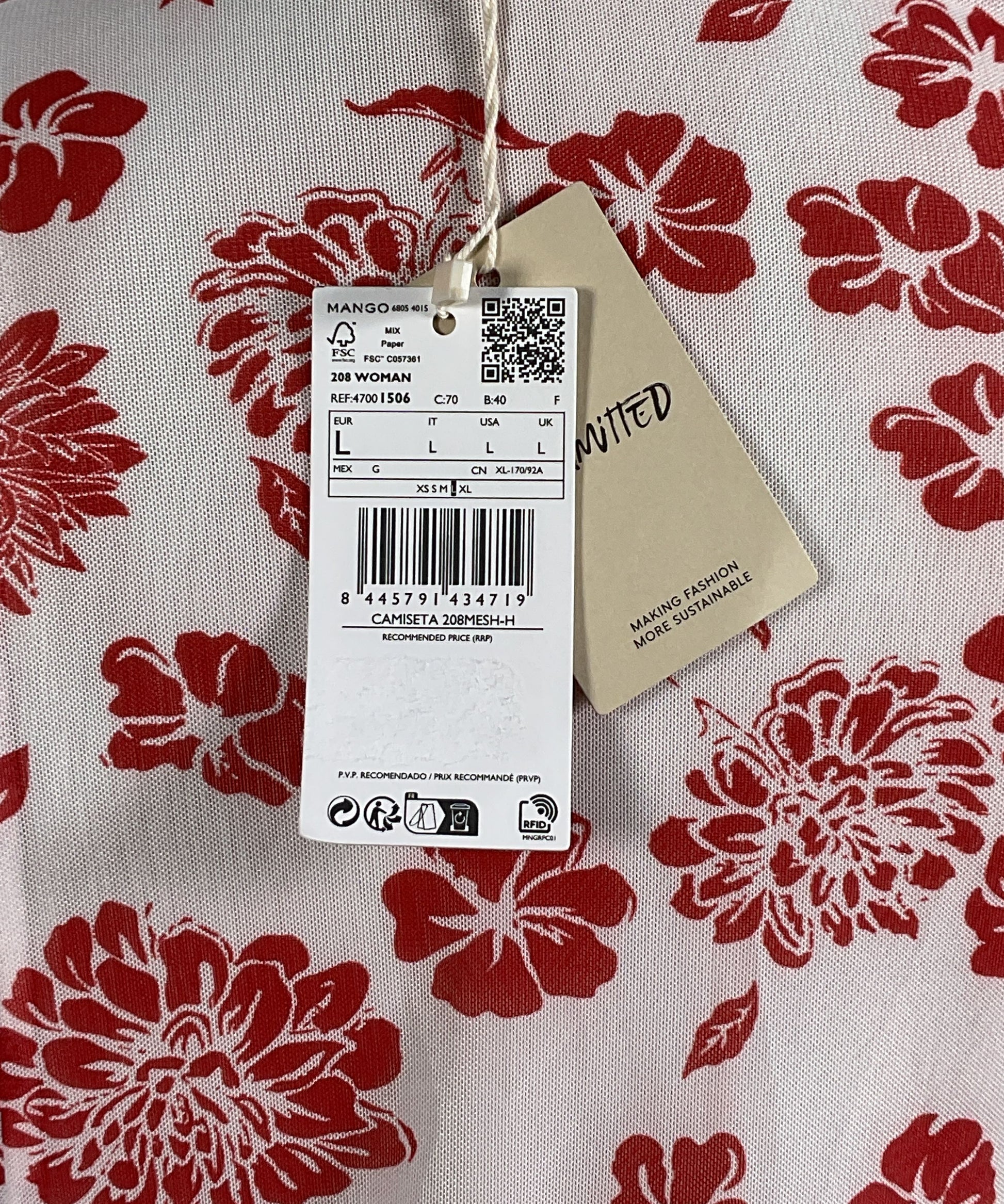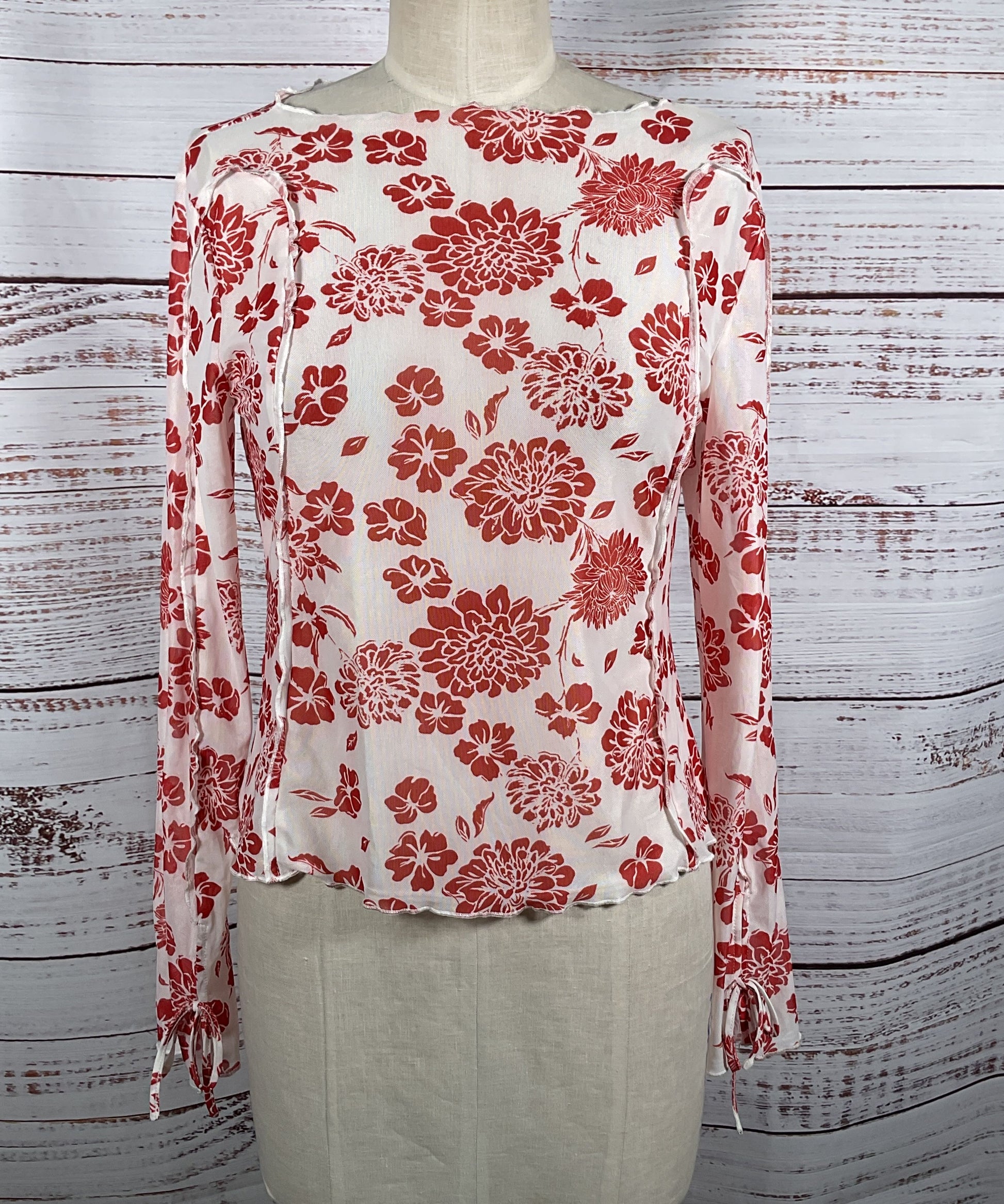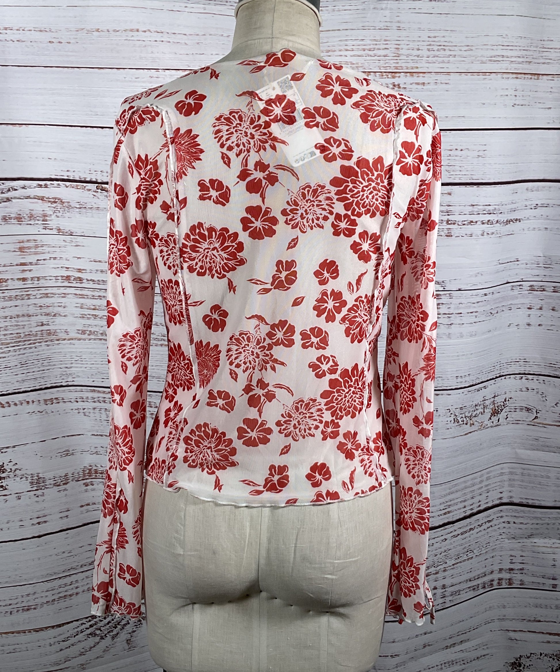 Mango Floral Print Long Sleeve Shirt Red White L