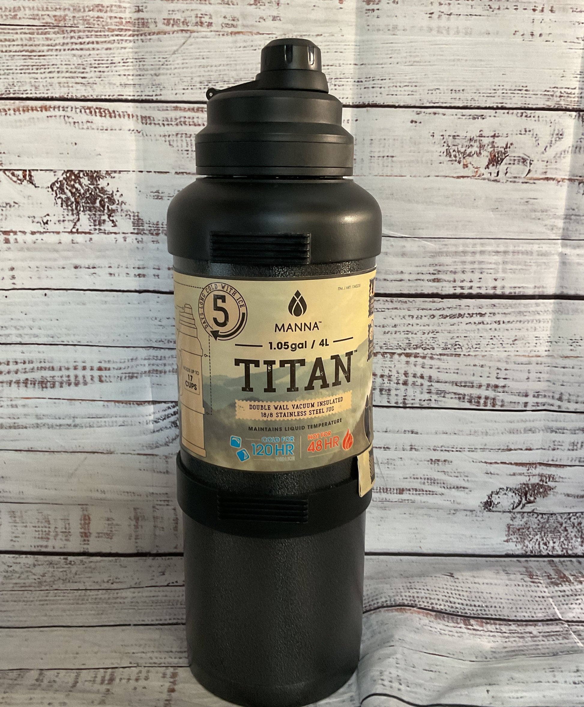 Manna Titan 1.05 Gallon Insulated Thermos Jug Stainless Steel 4 Liter Black