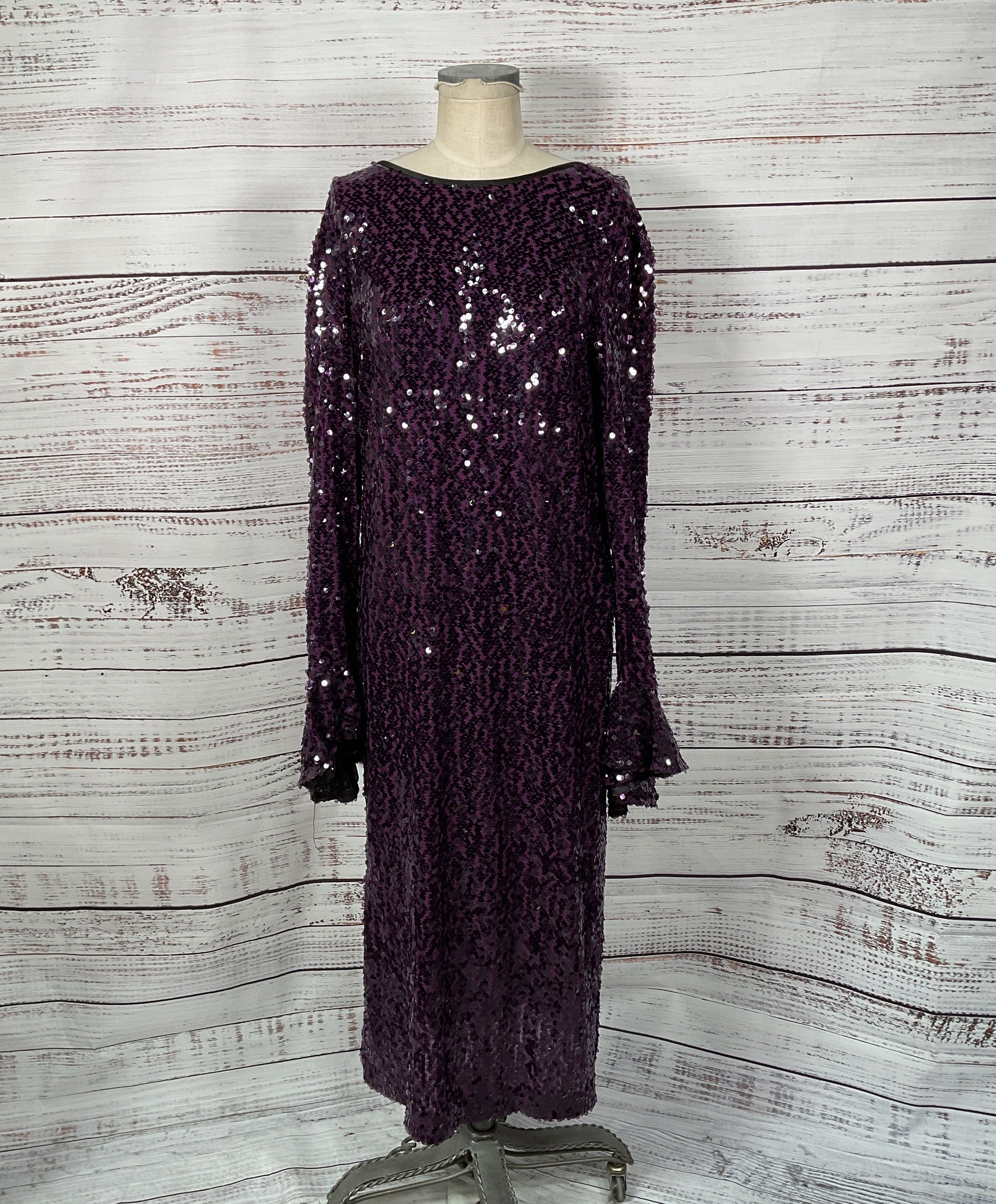 Mantu Purple Sequin Long Sleeve Formal Dress - Size Large