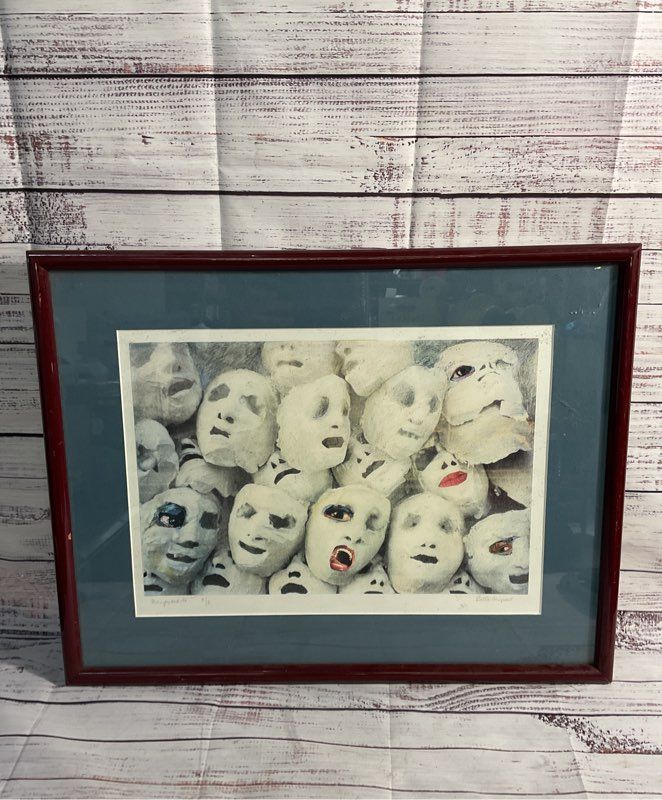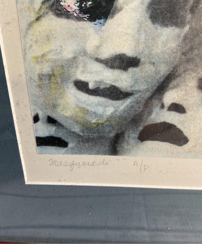 Description: Masquerade Art by Belle Print Signed. Matted & Framed