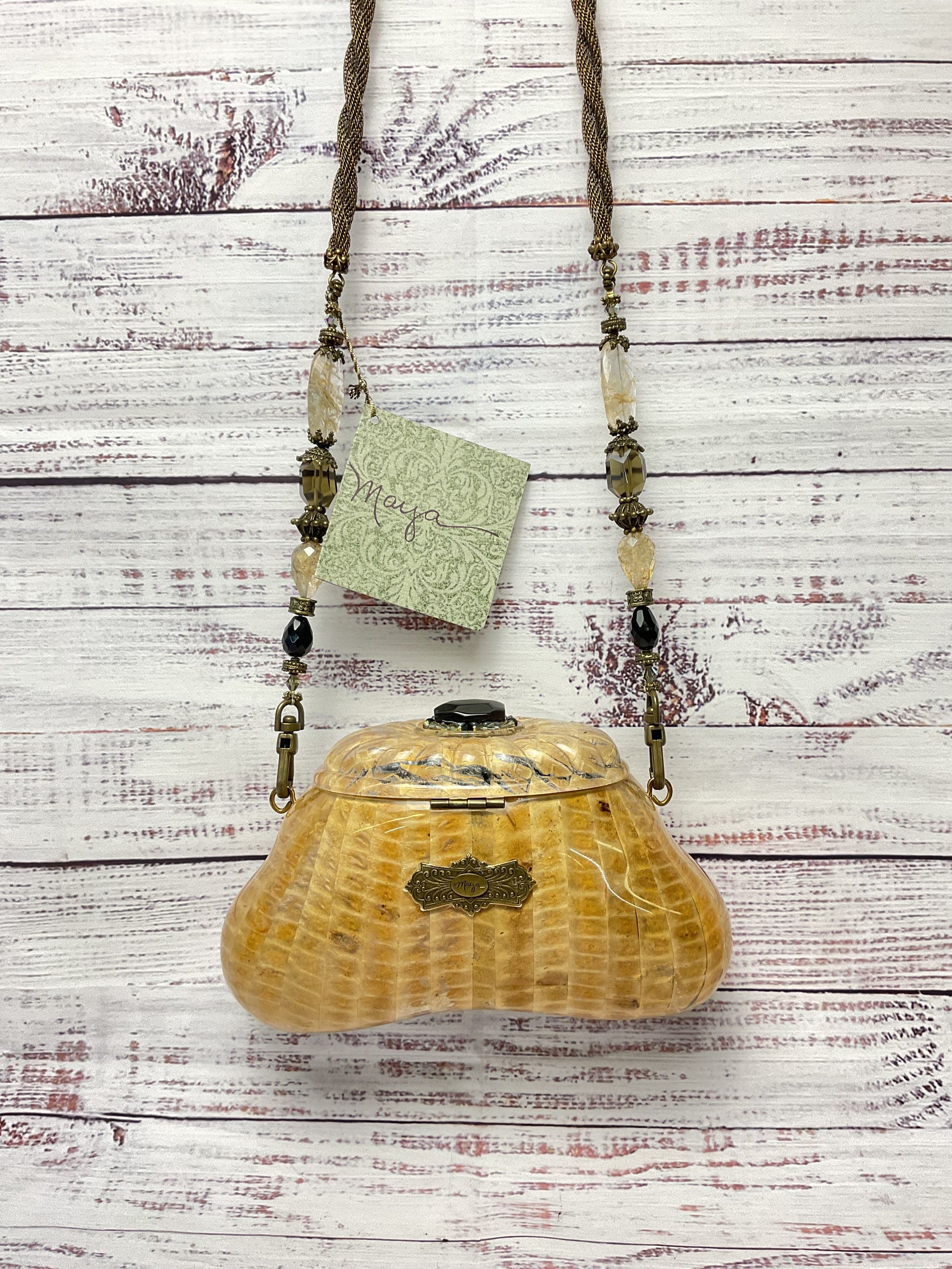 Maya Resin Hard Shell Tan Beige Small Shoulder Bag Purse 8"x4.5"x3"