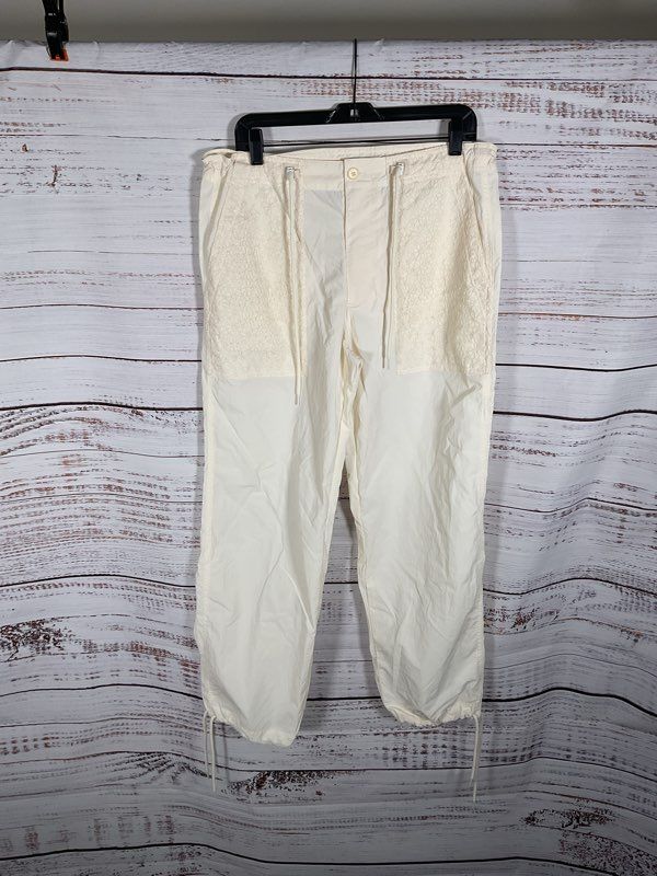 Men's Sundae School Cream Floral Print Jogger Pants 100% Nylon Size Small