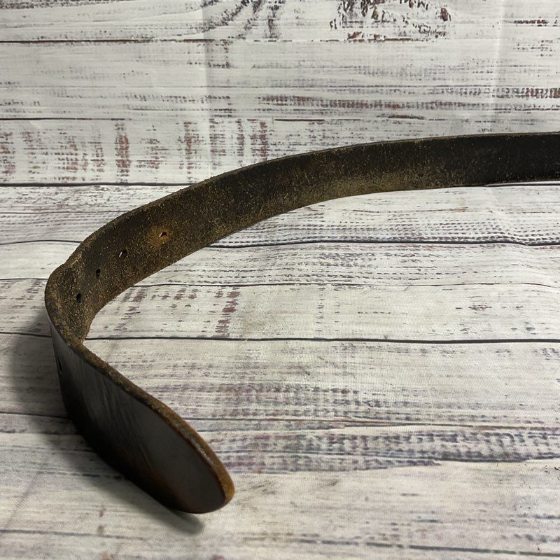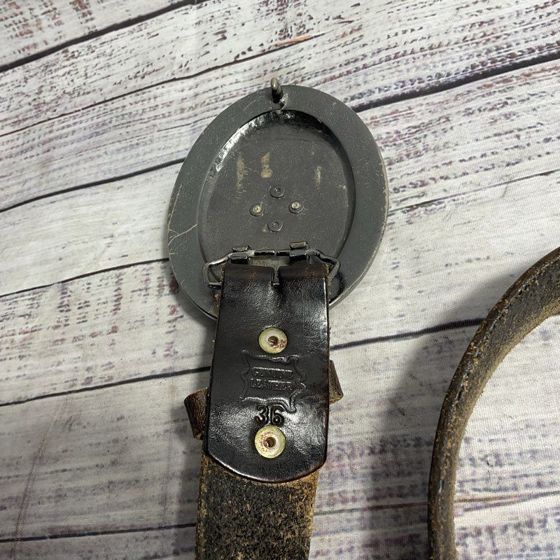 Metal Fleur De Lis Buckle Dark Brown Leather Belt Size 36