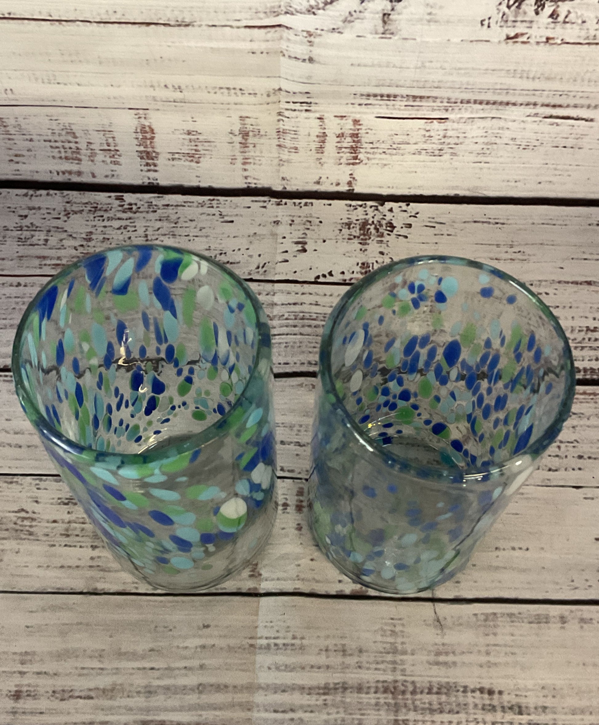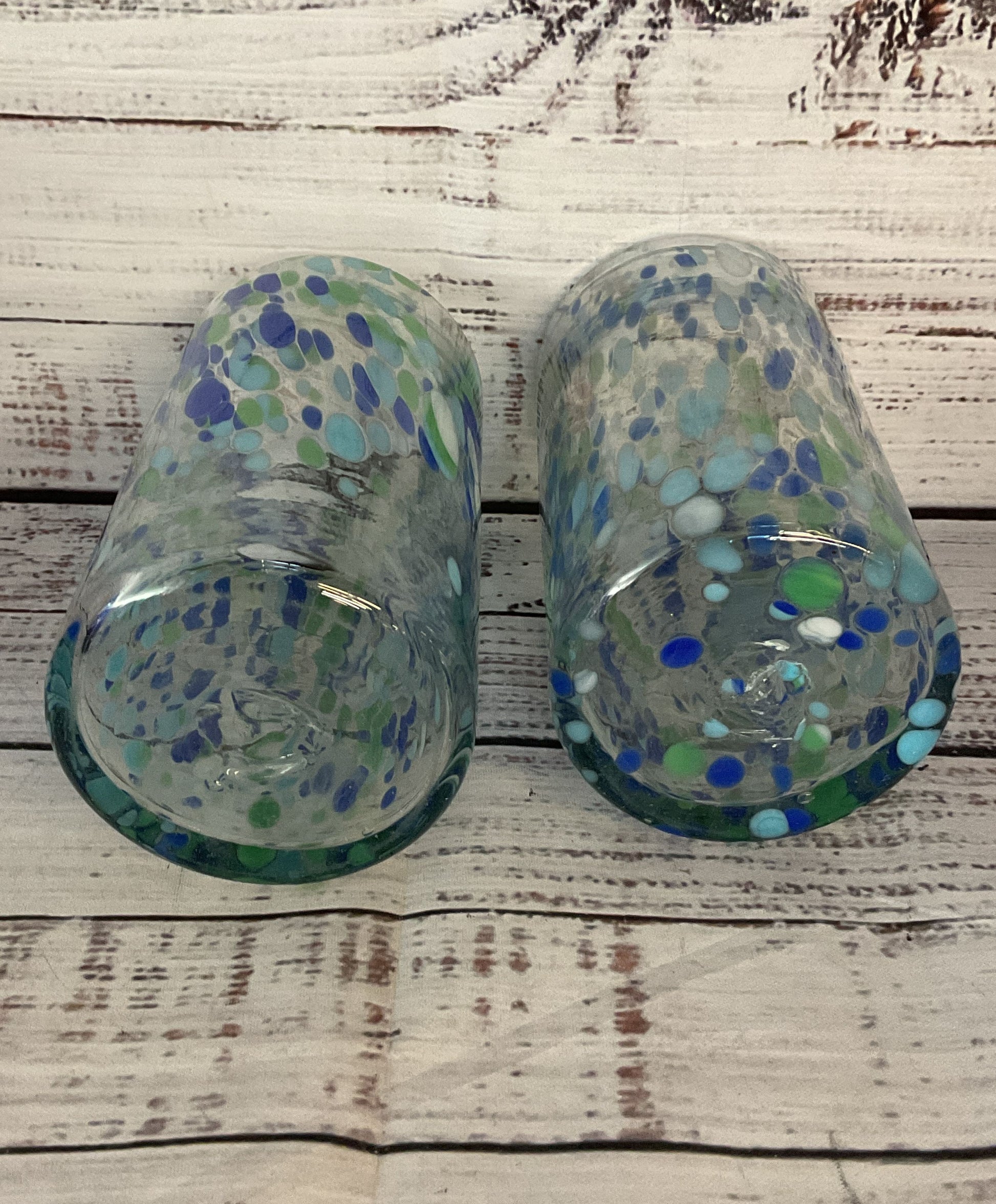 Modern Hand Blown Speckled Mexican Drinking Glasses Lot of 2 Multicolor