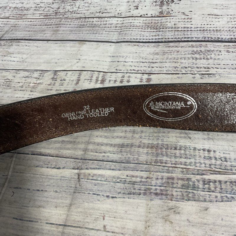 Montana Silversmiths Dark Brown Embossed Leather Cowboy Belt sz 32 *NO BUCKLE*
