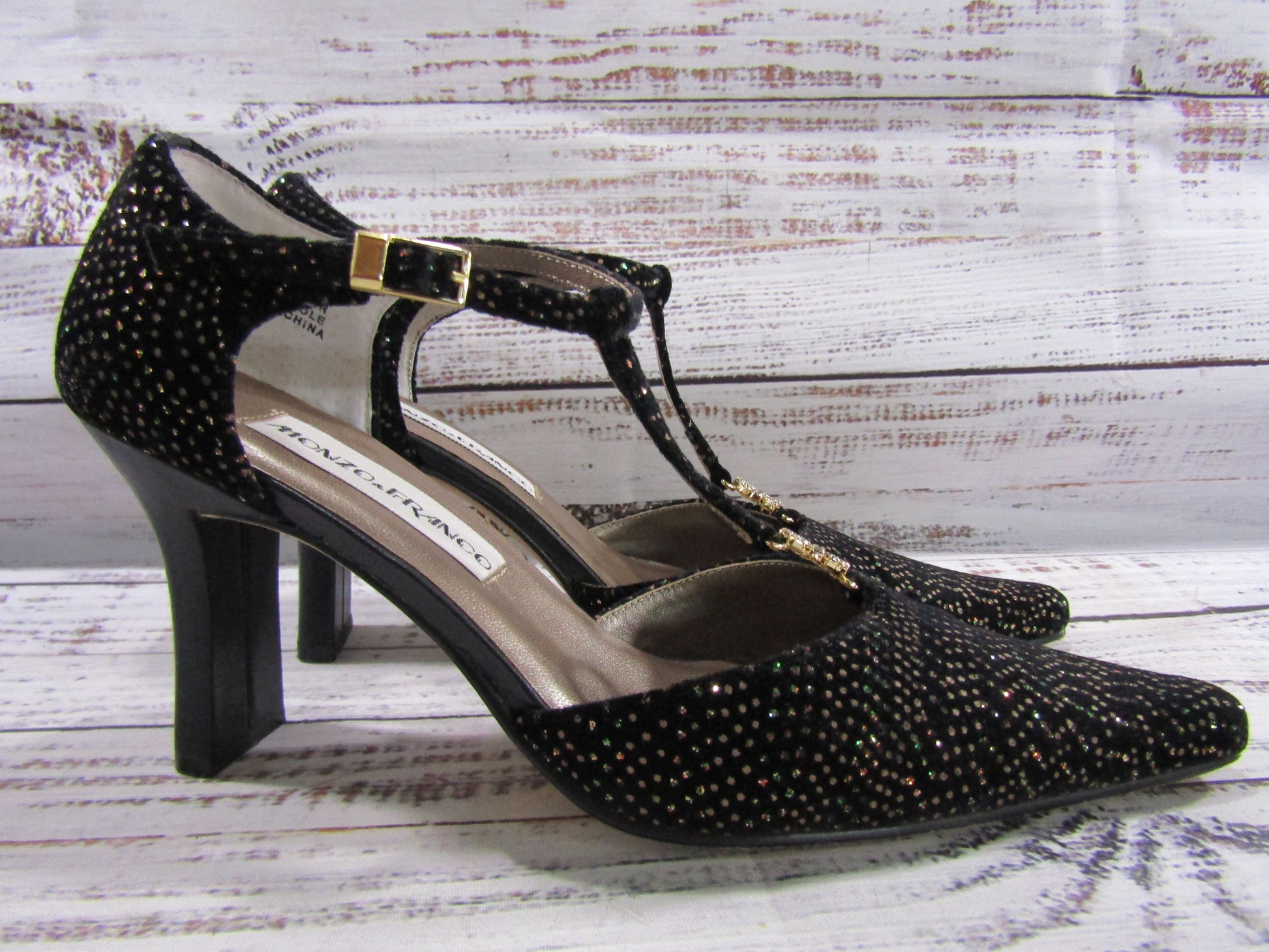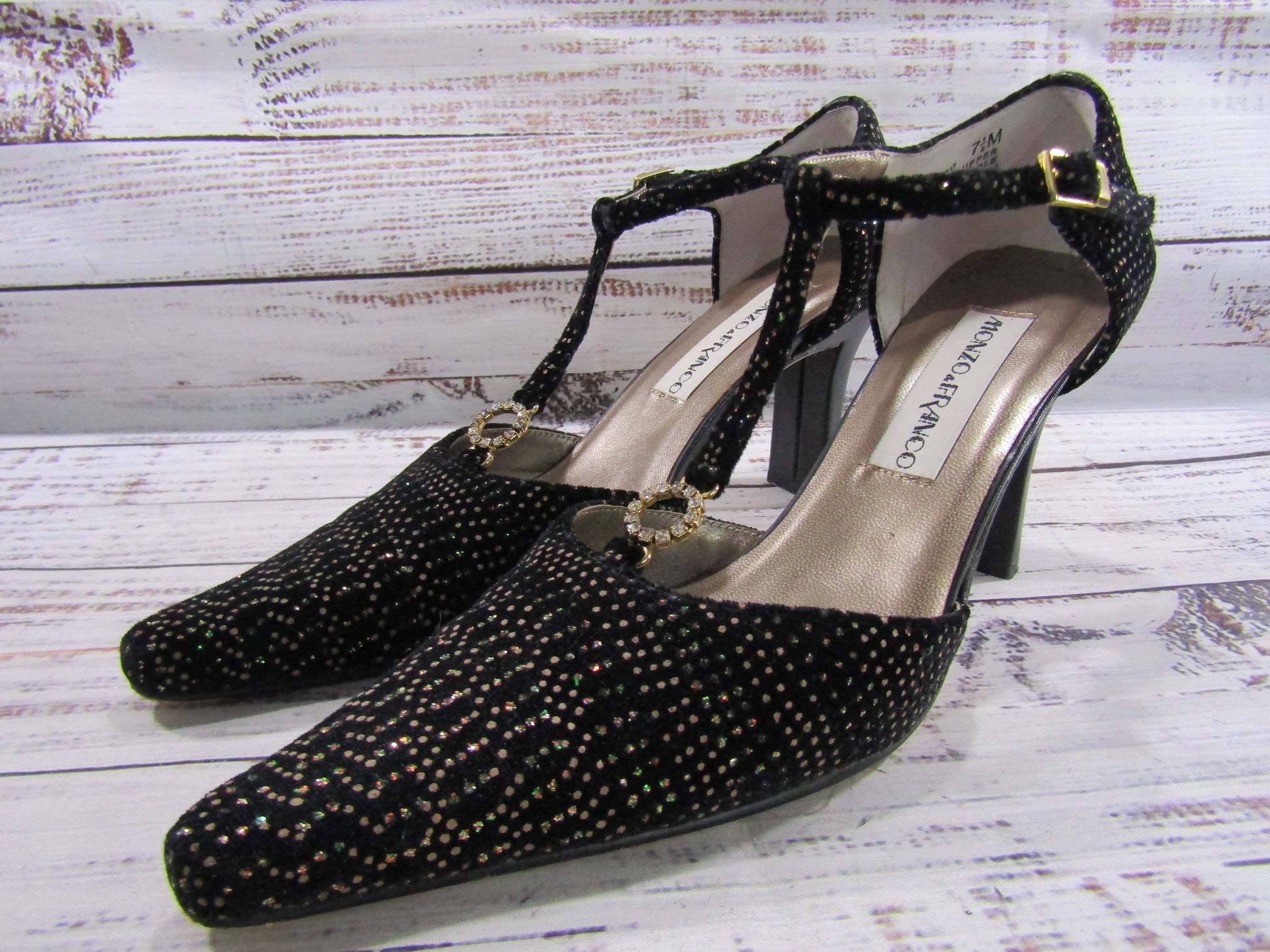 Monzo & Franco Tango Women's Black Ankle Strap Heel Size 7.5