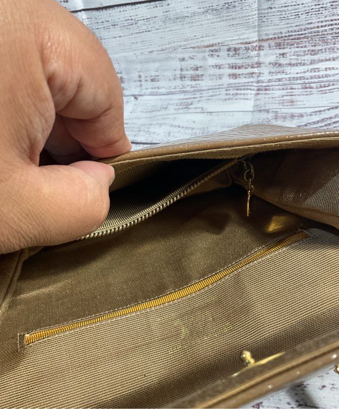 Morris Moskowitz Genuine Leather Brown Gold Tone Chain Strap Shoulder Bag