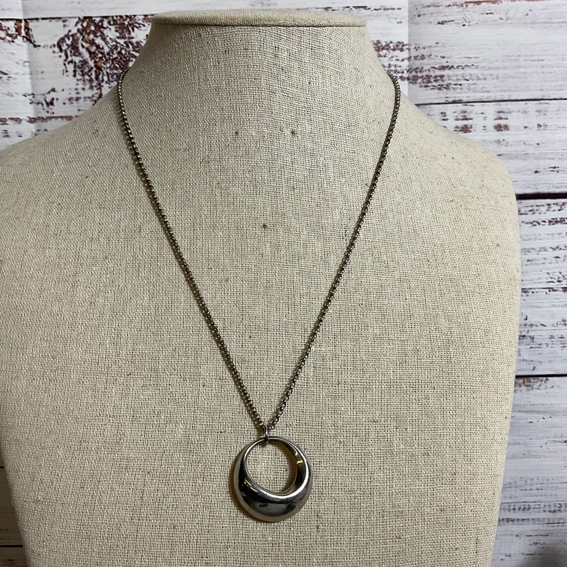 NAMBE Sterling Silver Circle Pendant 18" Rolo Chain Necklace- 14.55g
