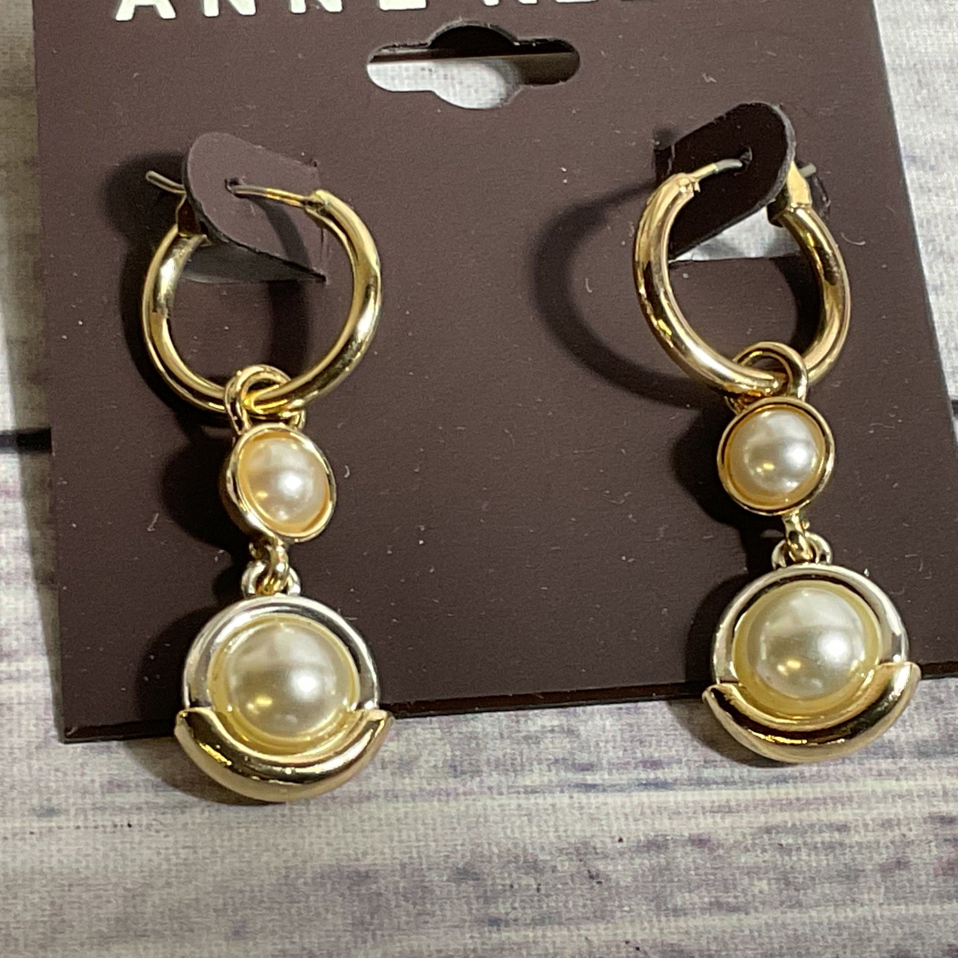 NEW ANNE KLEIN Gold Tone Faux Pearl Dangle Earrings-1.5"