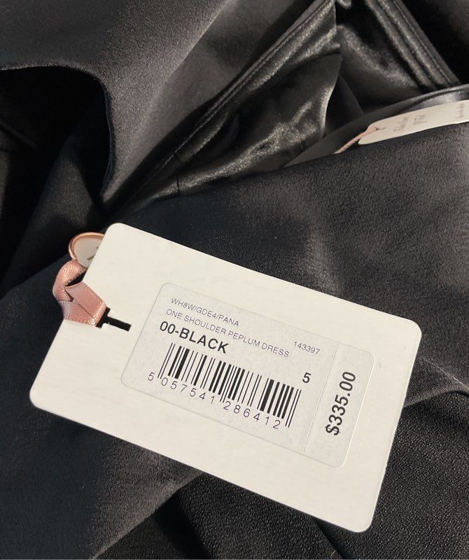 NEW Ted Baker One Shoulder Peplum Pana Sheath Dress Size 5 Black