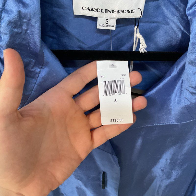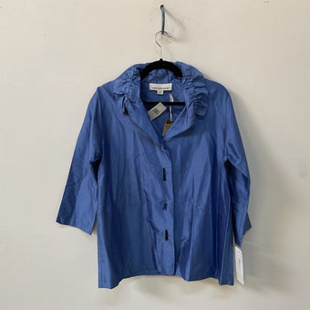 NEW w/ DEFECT Caroline Rose French Blue Silk Quarter Sleeve Blouse - Size S