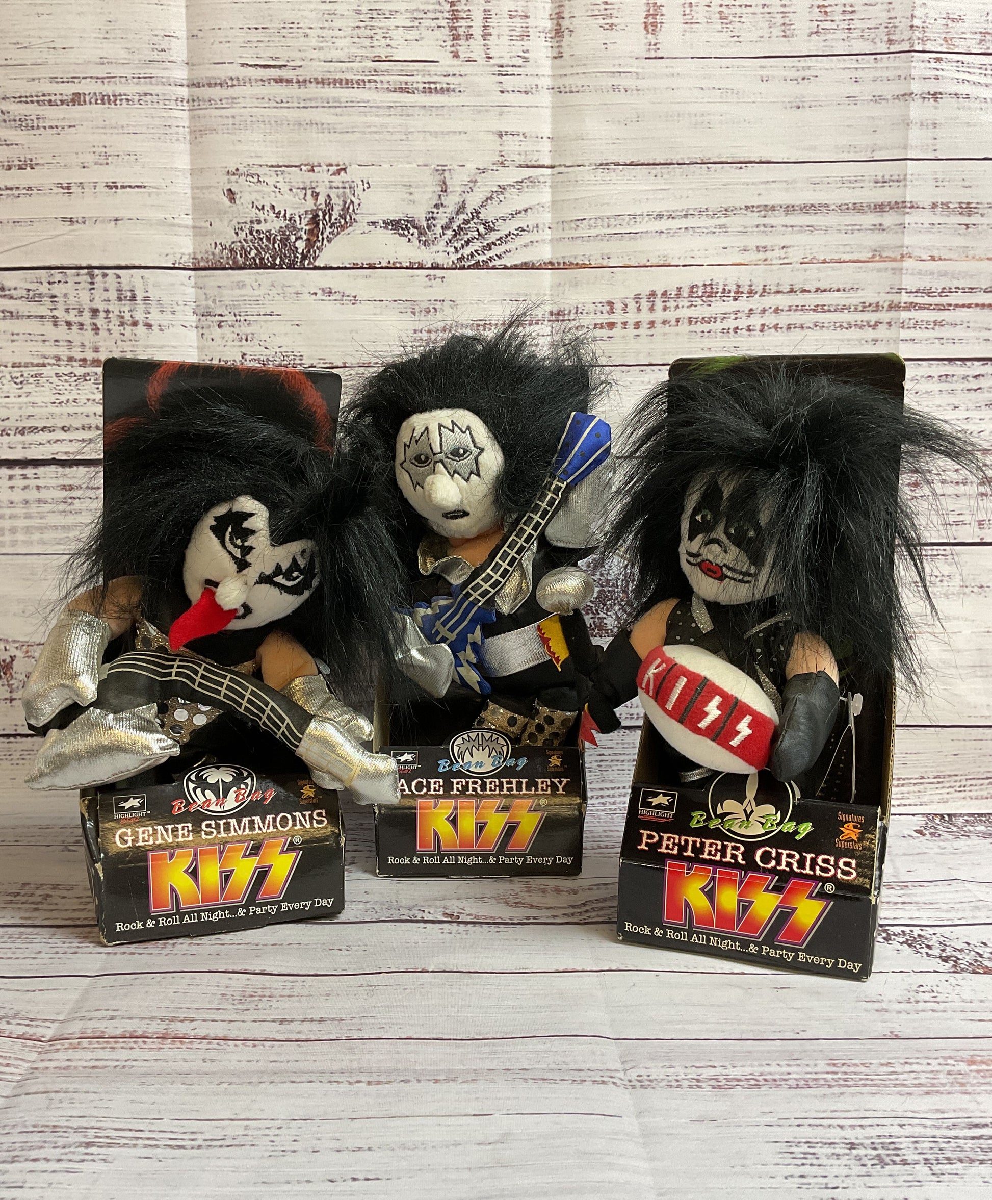 NIB Vintage 1999 Set Of Three Kiss Plush Bean Bag Dolls 11"