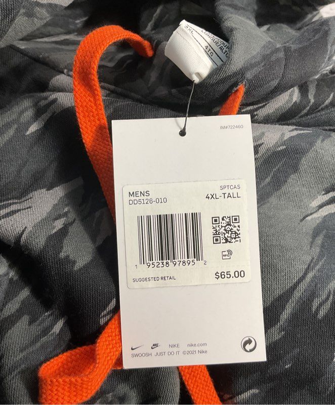 Nike NSW Sports Essentials Club Fleece Hoodie Size 4XL Tall DD5126-010 Black