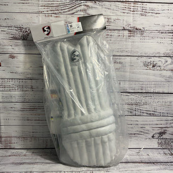 NOB SG Shield White Cricket Batting Legguards Protective Padding Junior X-Small