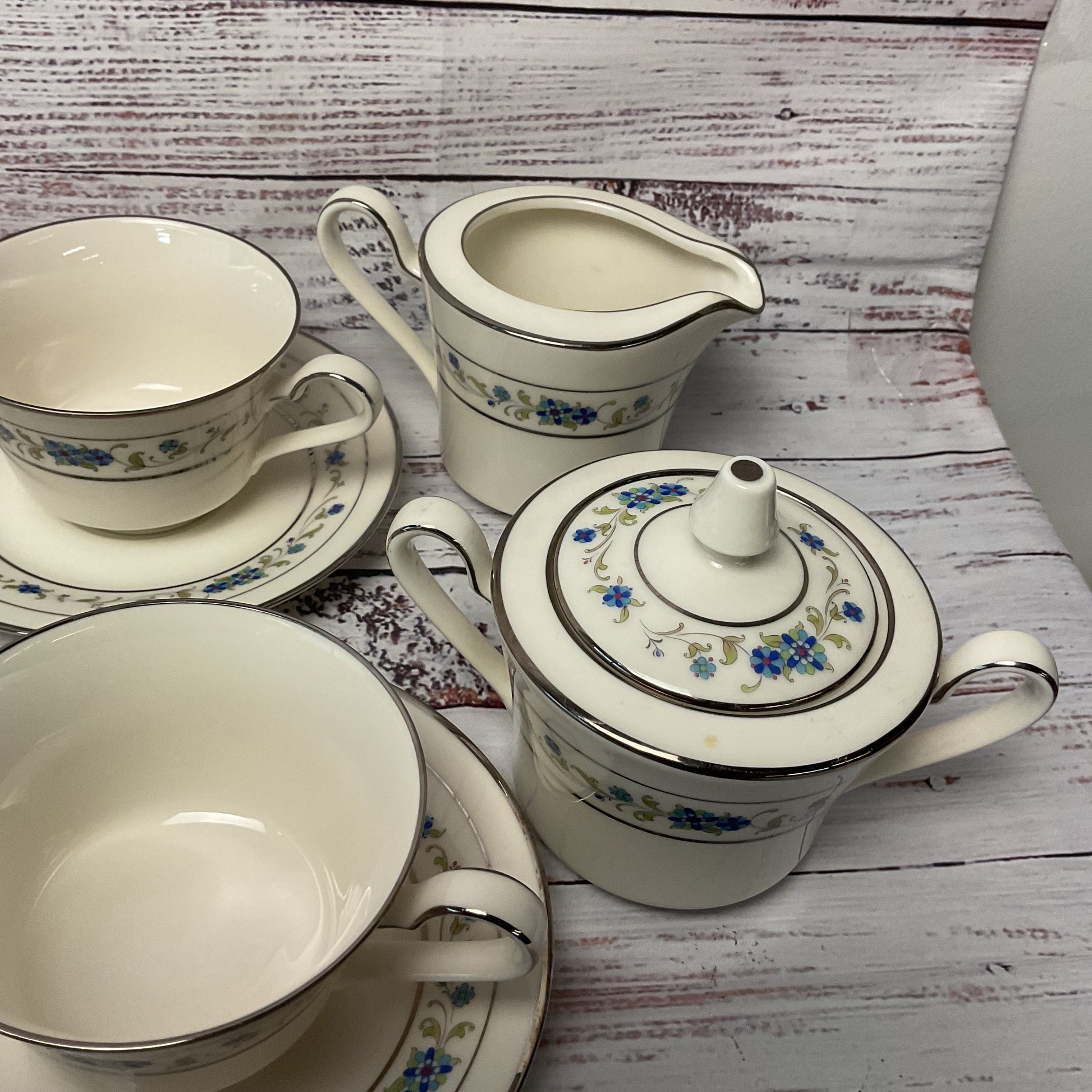 Noritake Norma Ivory China 7016 Ceramic Tea Cup Saucer Creamer Sugar Bowl 26 Pc