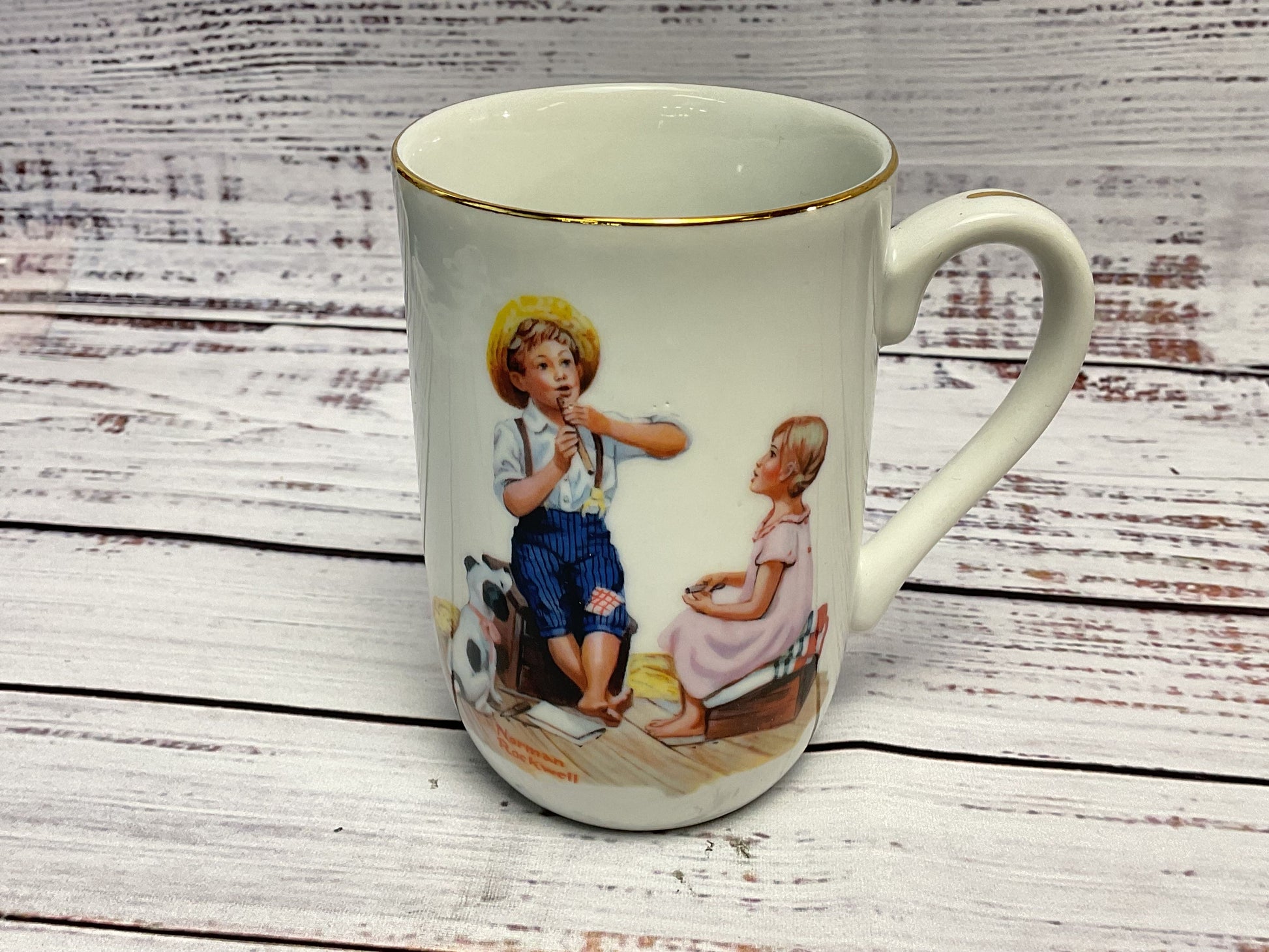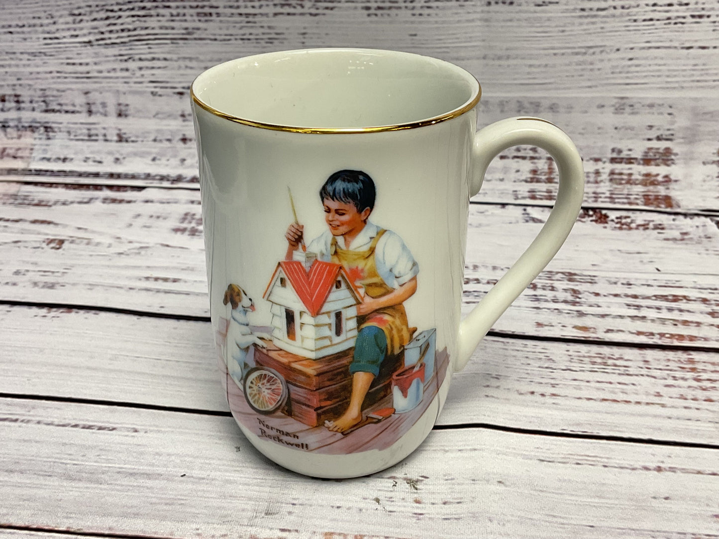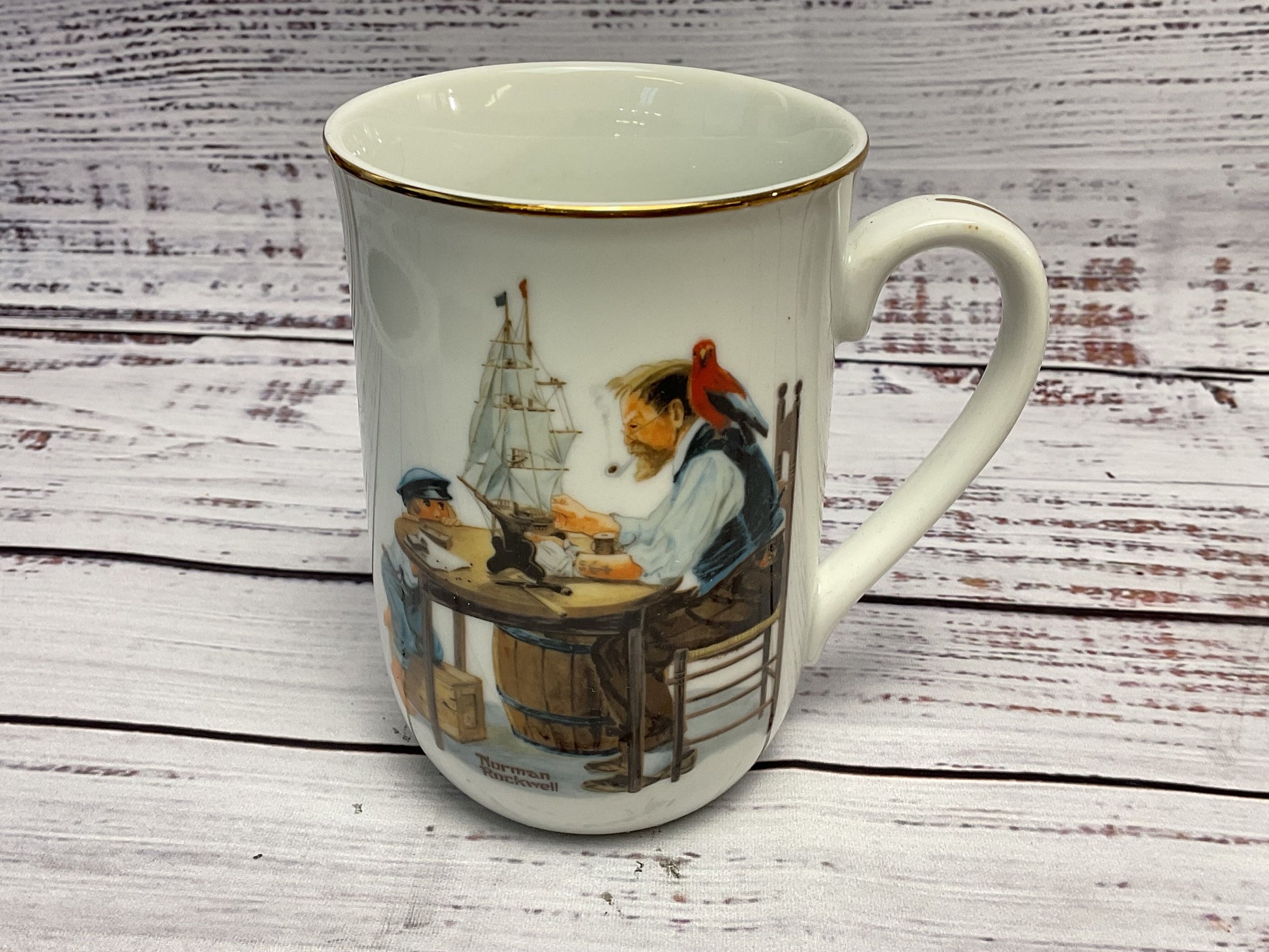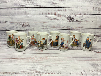 Norman Rockwell Museum Gold Rim Coffee Mus Lot Of 8 Ceramic Art