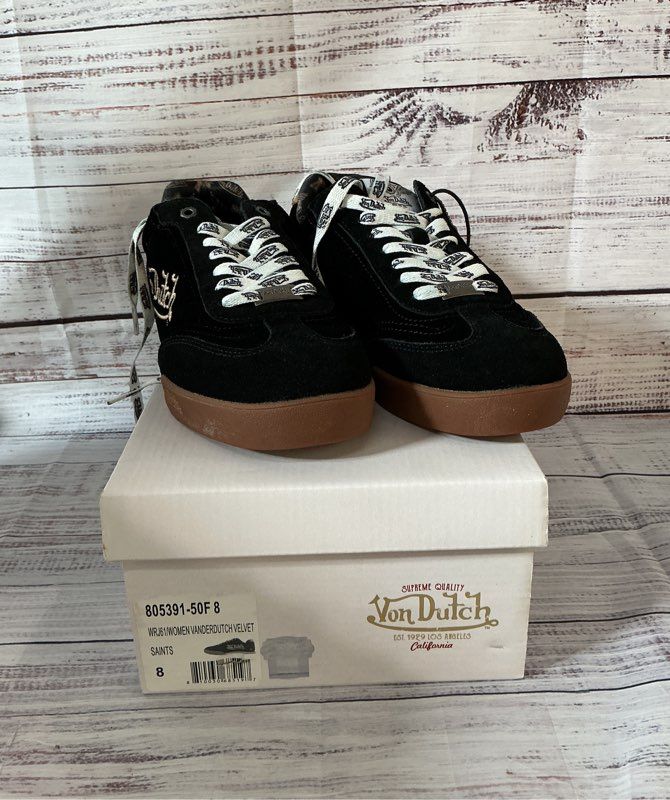NWB Women's Von Dutch Velvet Saints Black Sneaker Size 8