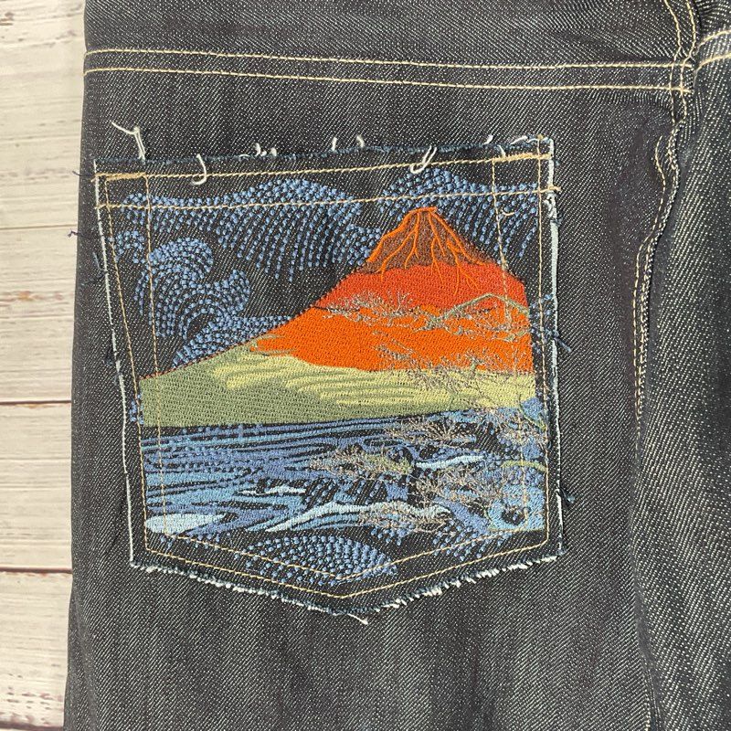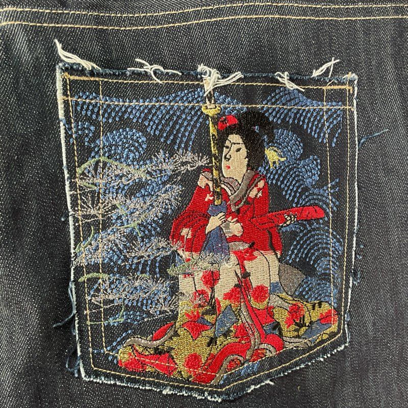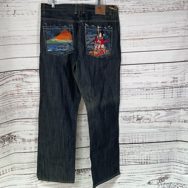 NWOT Japanese Brand BUDA BEAN Men's Embroidered Blue Jeans- SZ 38W x 35"L