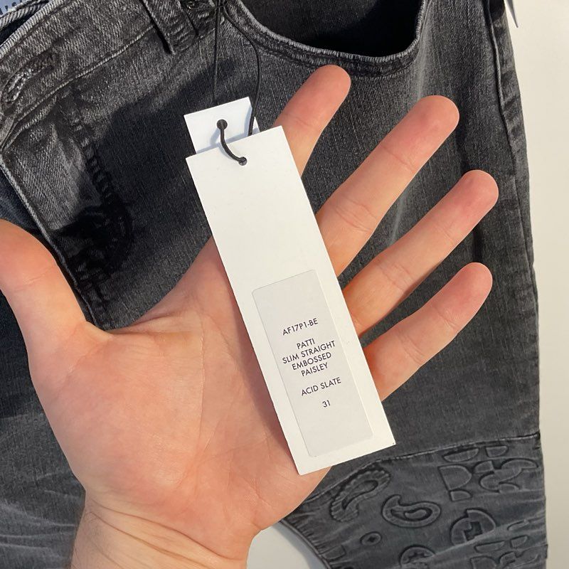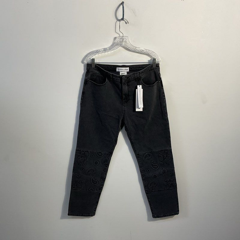 NWT Alyssa Less Acid Slate Embossed Paisley Patti Slim Straight Jeans - Size 31