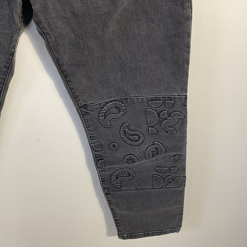 Alyssa Less Acid Slate Embossed Paisley Patti Slim Straight Jeans - Size 31