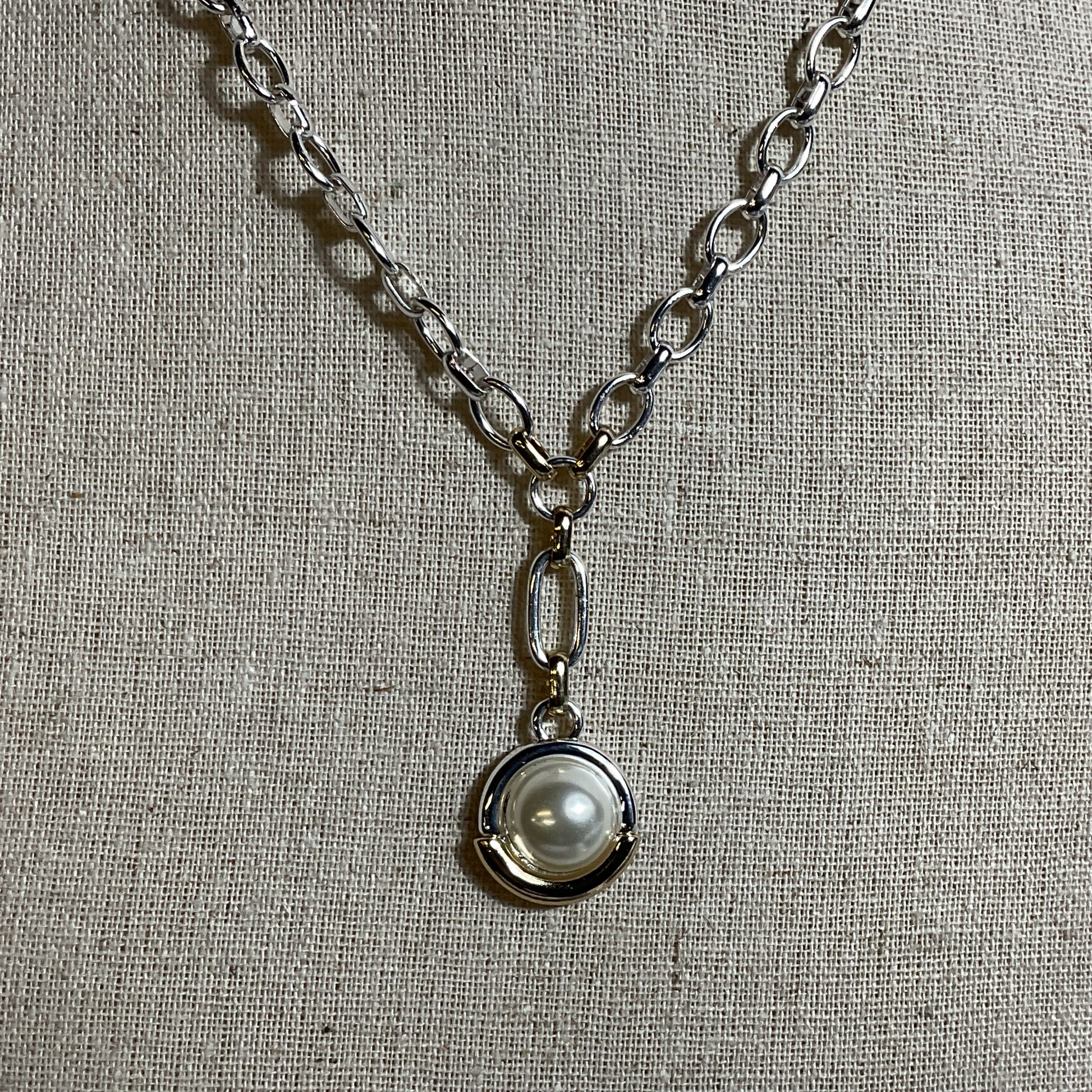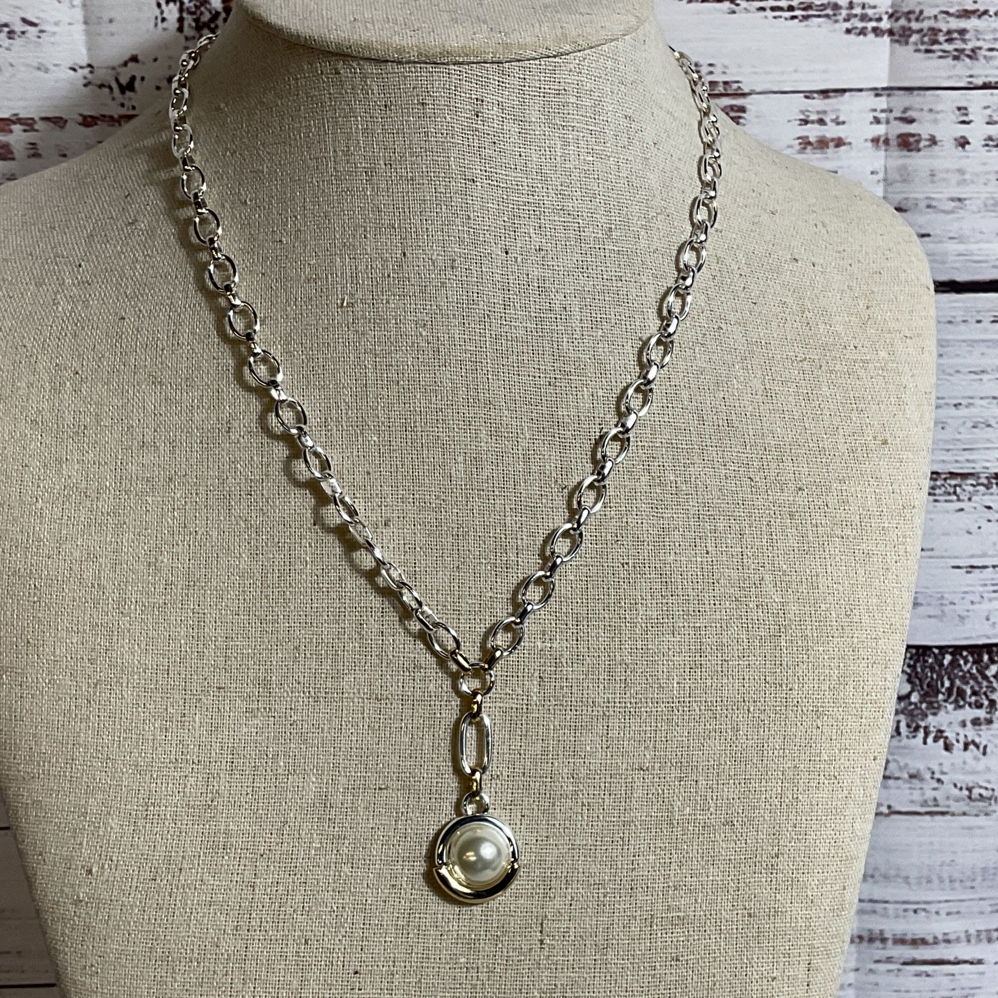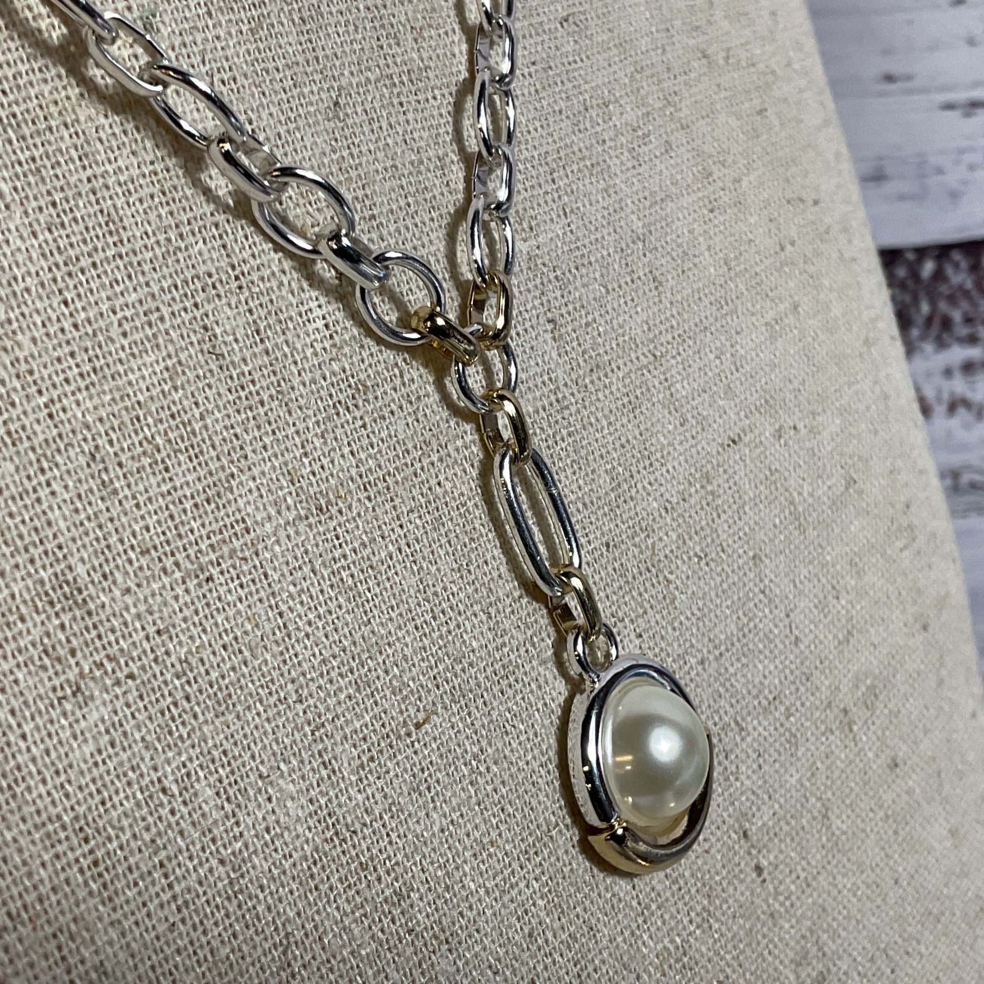 NWT ANNE KLEIN Silver Tone Faux Pearl Dangle Pendant Necklace- 22"