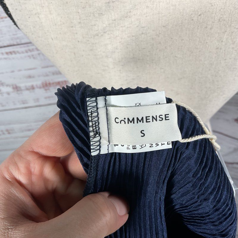 NWT Commense Pleated Navy Blue Assymetrical Halter Top - Size S