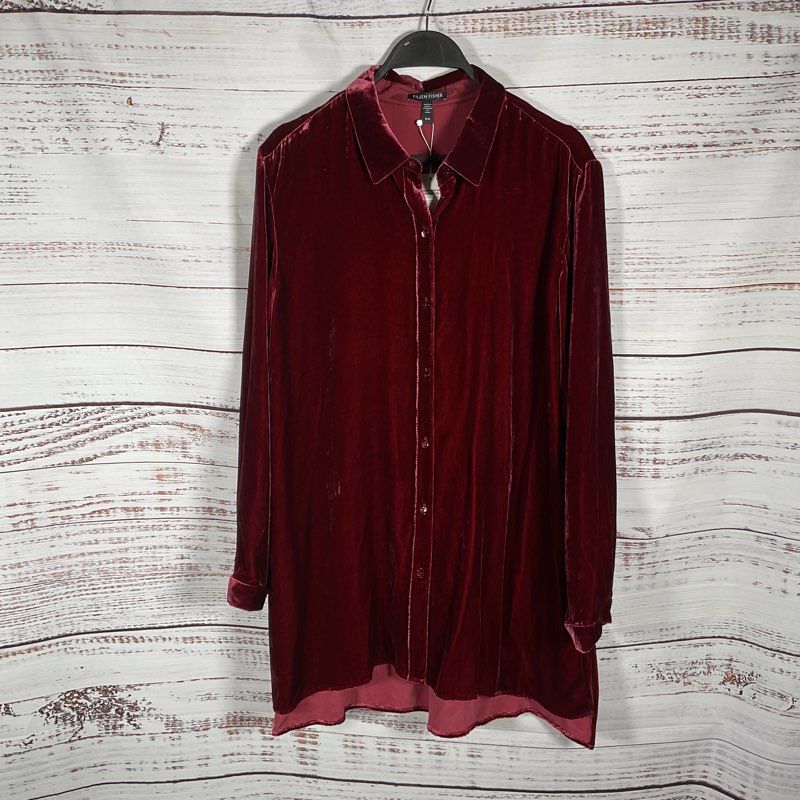 NWT Eileen Fisher Hibiscus Velvet Maroon Button Up Shirt MSRP $288 - Size M